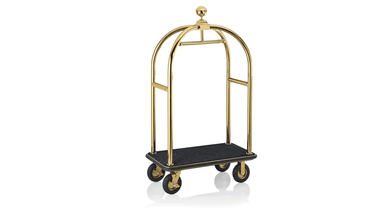 Bagagewagen " Birdcage " Goudkleurig frame met zwart tapijt