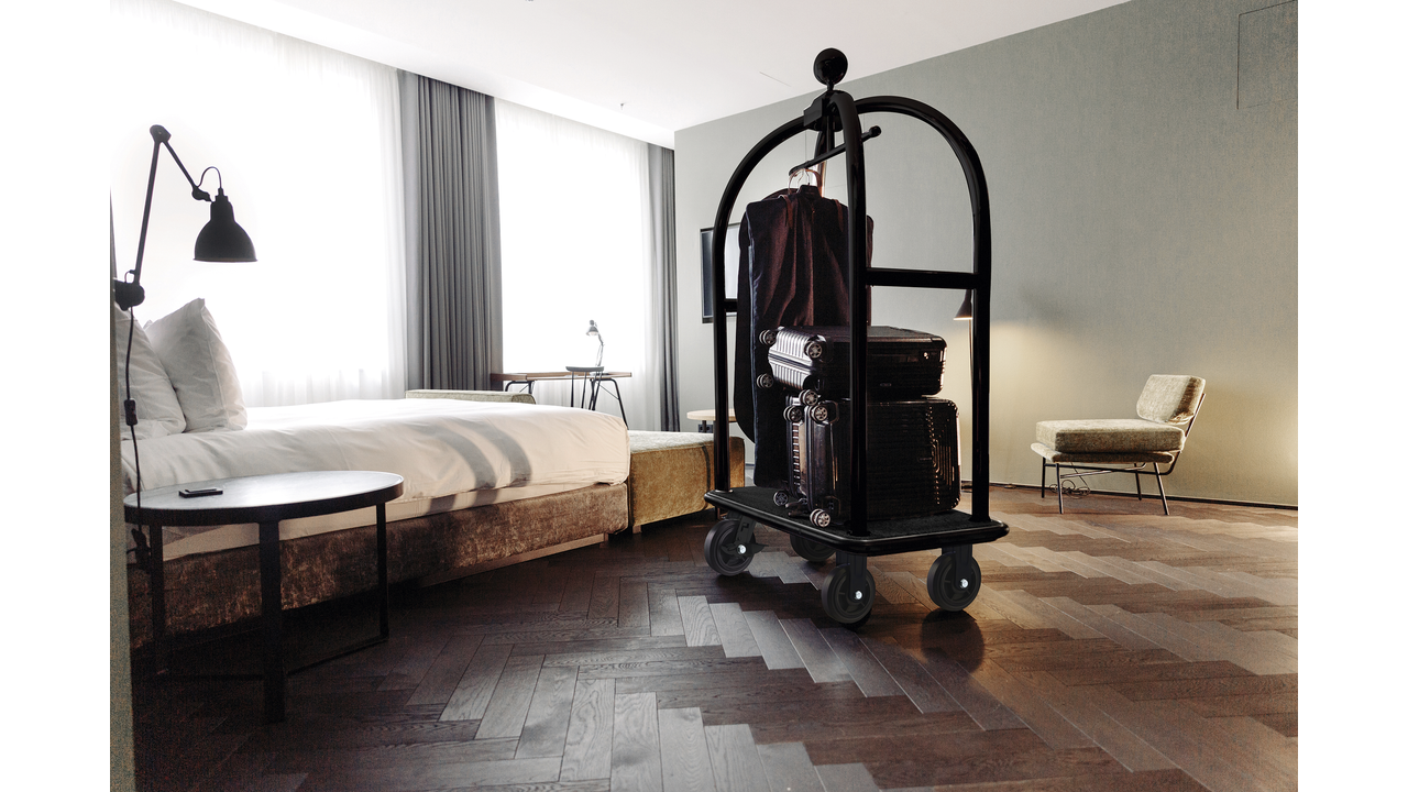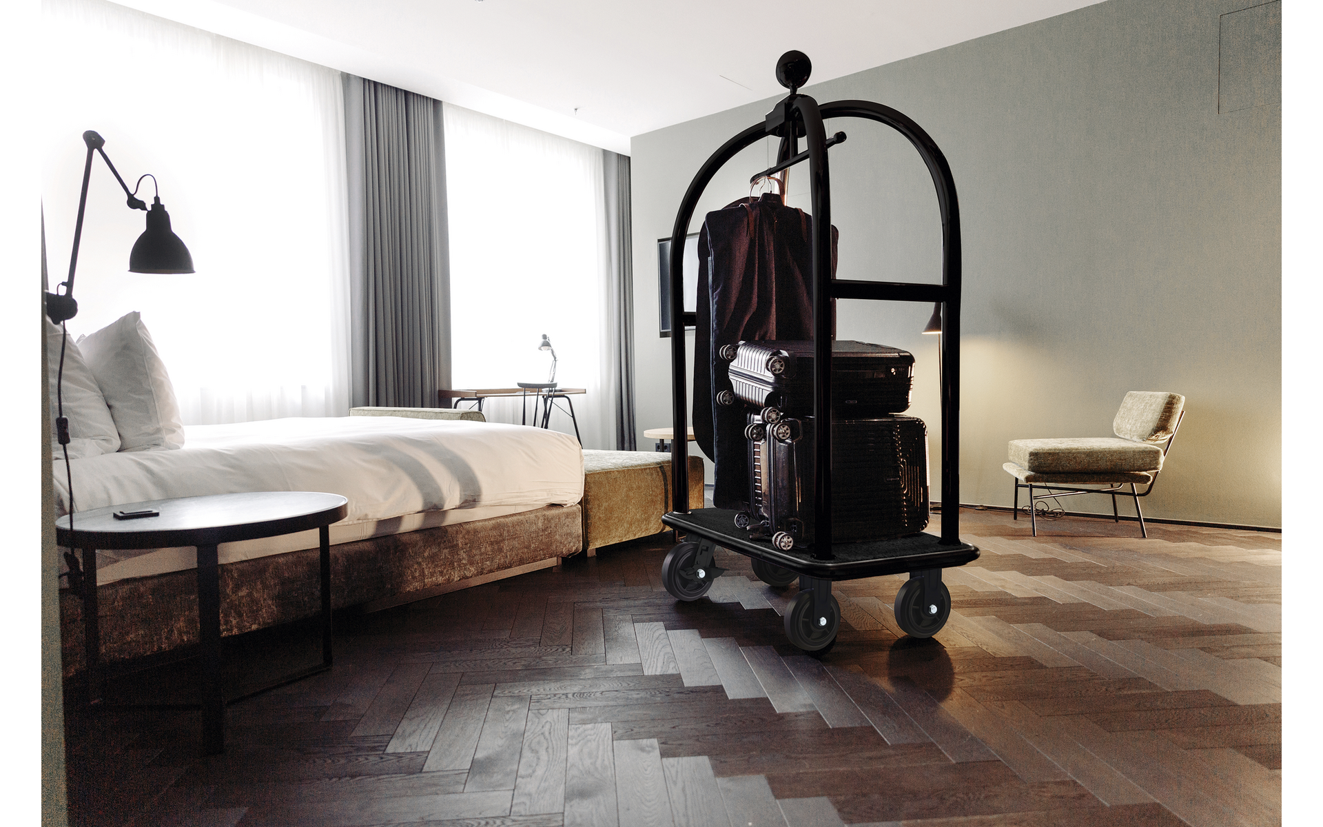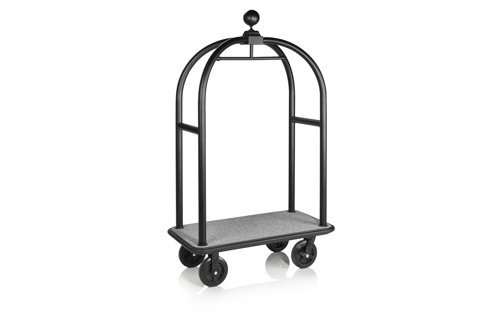 Deze volledig zwarte "vogelkooi" bagagetrolley is een echte blikvanger, uitstekend geschikt voor trendy hotels, B&B's en Boutique hotels.