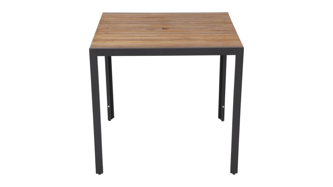Uw klanten willen nette, praktische eettafels waaraan ze kunnen bijpraten. Met genoeg beenruimte om comfortabel te kunnen zitten, hoe lang of kort ze ook zijn en deze vierkante houten en stalen tafel " Le Zoute " biedt het allemaal. De tafel is gemaakt van hoge kwaliteit gepoedercoat, mat zwart staal met een houten blad dat makkelijk te onderhouden is.