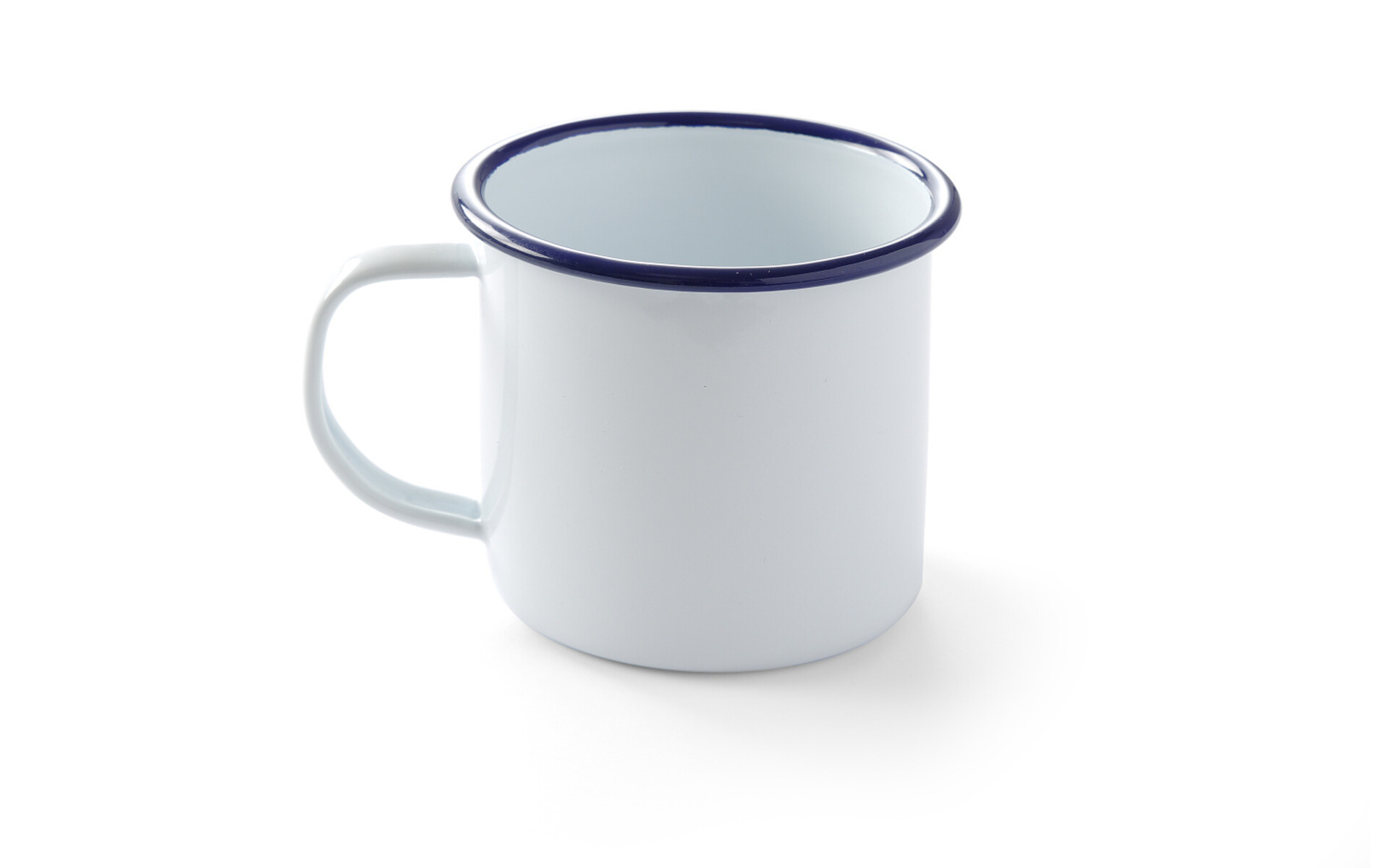 Beker 36 cl wit geëmalleerd staal met blauwe boord
