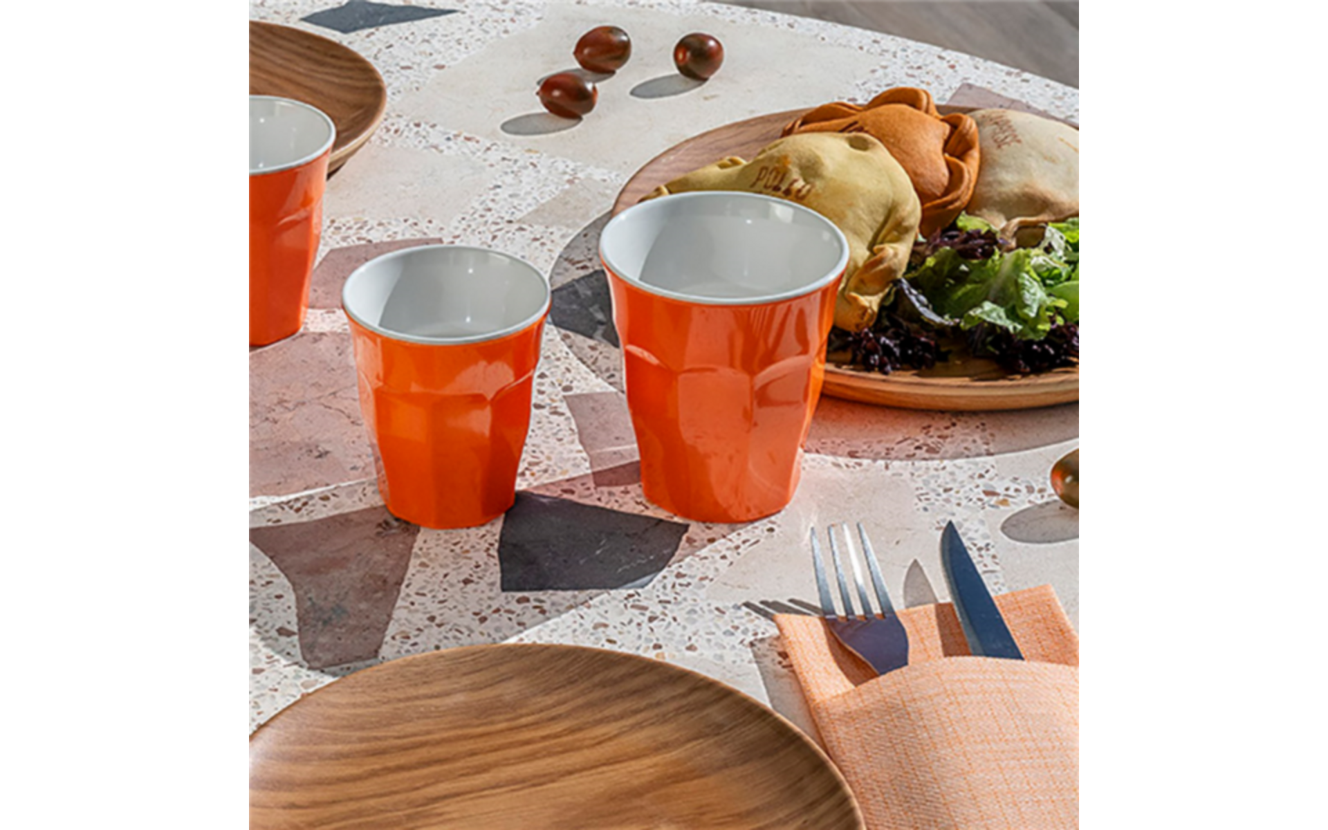 Stapelbare oranje melamine bekers van 295 ml, duurzaam en praktisch voor hotels, restaurants.Met een Ø 8,8 x h 9 cm zijn deze bekers gemaakt van hoogwaardig melamine, wat zorgt voor duurzaamheid, lichtheid en stoot- en valbestendigheid. Ze vormen daarmee een veilig alternatief voor glas of keramiek. Dankzij het stapelbare ontwerp kunnen ze netjes en efficiënt worden opgeborgen, waardoor ruimte wordt bespaard in professionele keukens, buffetten, campings, scholen, woningen en huizen. De oranje afwerking geeft een moderne en dynamische uitstraling die elke tafelsetting verfraait en past bij diverse soorten serviesgoed. Ideaal voor water, sap, frisdrank of andere koude dranken. Deze stapelbare melamine bekers zijn de perfecte keuze voor hotels, instellingen en cateringbedrijven die op zoek zijn naar hygiënisch, functioneel en duurzaam serviesgoed. Een praktische en esthetisch aantrekkelijke oplossing die stevigheid, gebruiksgemak en een aantrekkelijk design combineert.