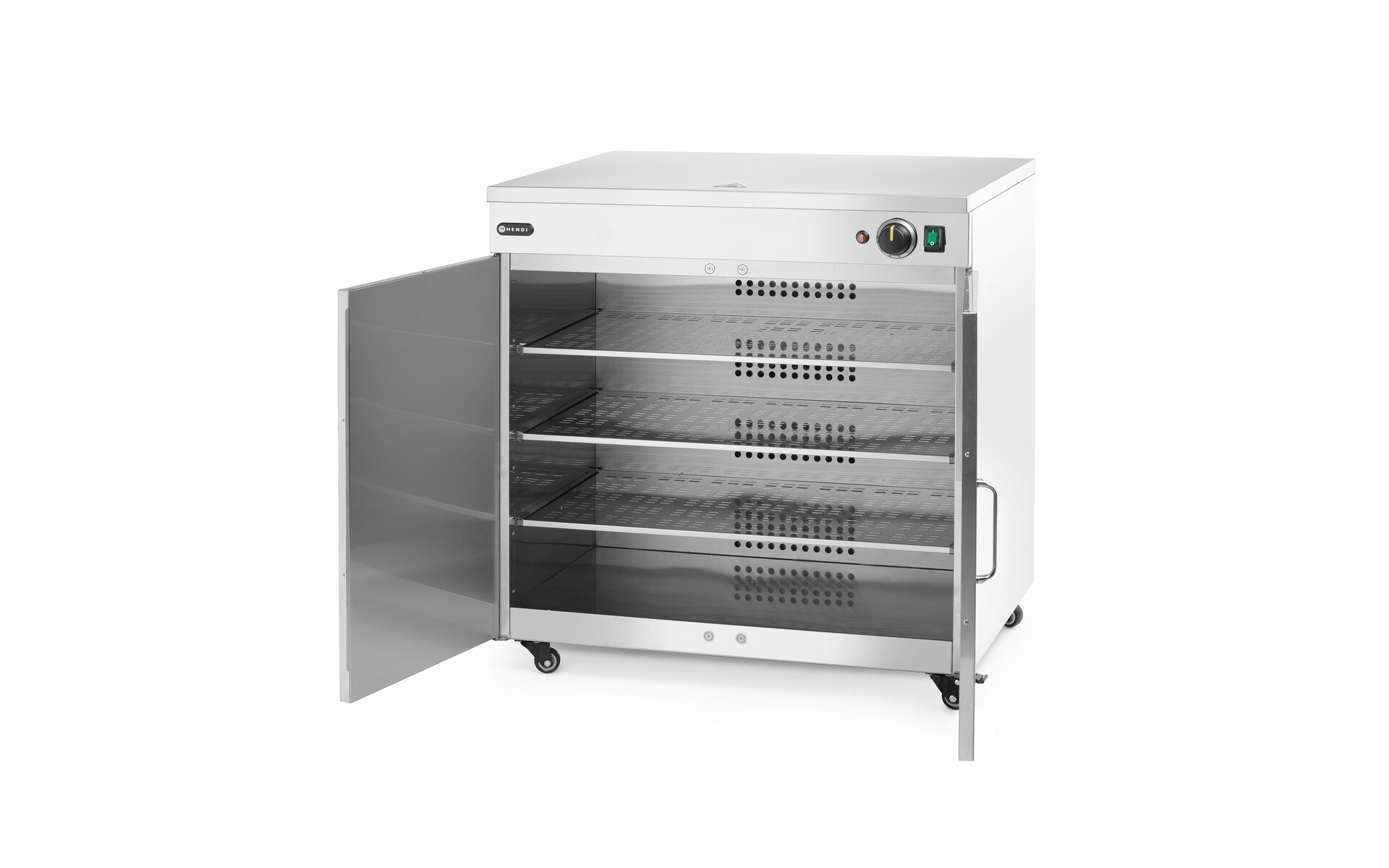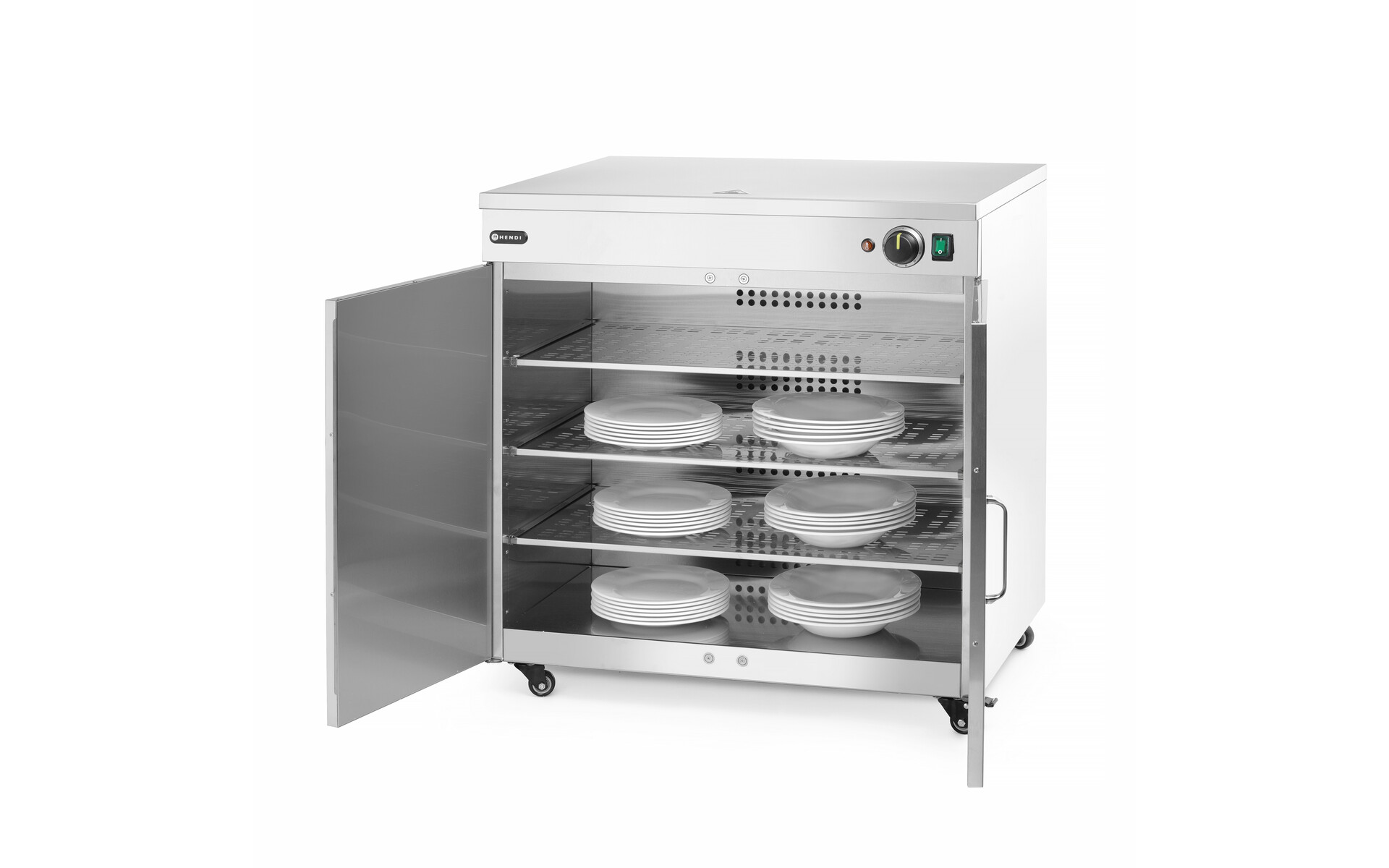 Verwarmt tot 108 stuks ⌀24 cm borden tegelijk. Maaltijden geserveerd op een verwarmd bord behouden de temperatuur en smaken langer. Inclusief 3 verwijderbare planken . Eenvoudig te verplaatsen – uitgerust met wielen.