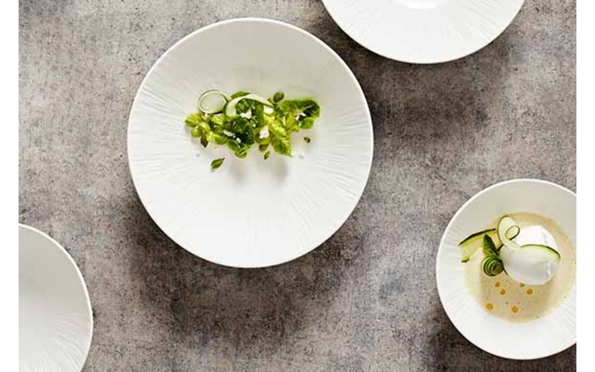 Het Pure White servies brengt de perfecte balans tussen modern design en klassieke elegantie. Gemaakt van hoogwaardig porselein, straalt dit servies rust en verfijning uit. De matte en subtiel gegroefde buitenzijde combineert fascinerend met de sierlijke geglazuurde bordspiegel. Deze mix zorgt voor een boeiend contrast dat opvalt in elke horeca zaak. Het strakke helderwitte design biedt een stijlvolle achtergrond die culinaire creaties prachtig laat uitkomen.