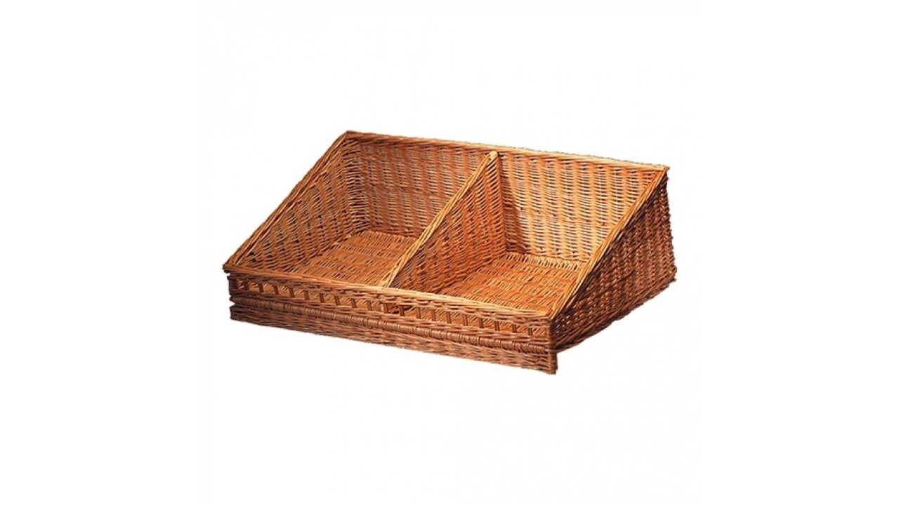 Afmetingen aflopend 15/30 cm h x 100 x 55 cm. Ambachtelijk rietwerk.