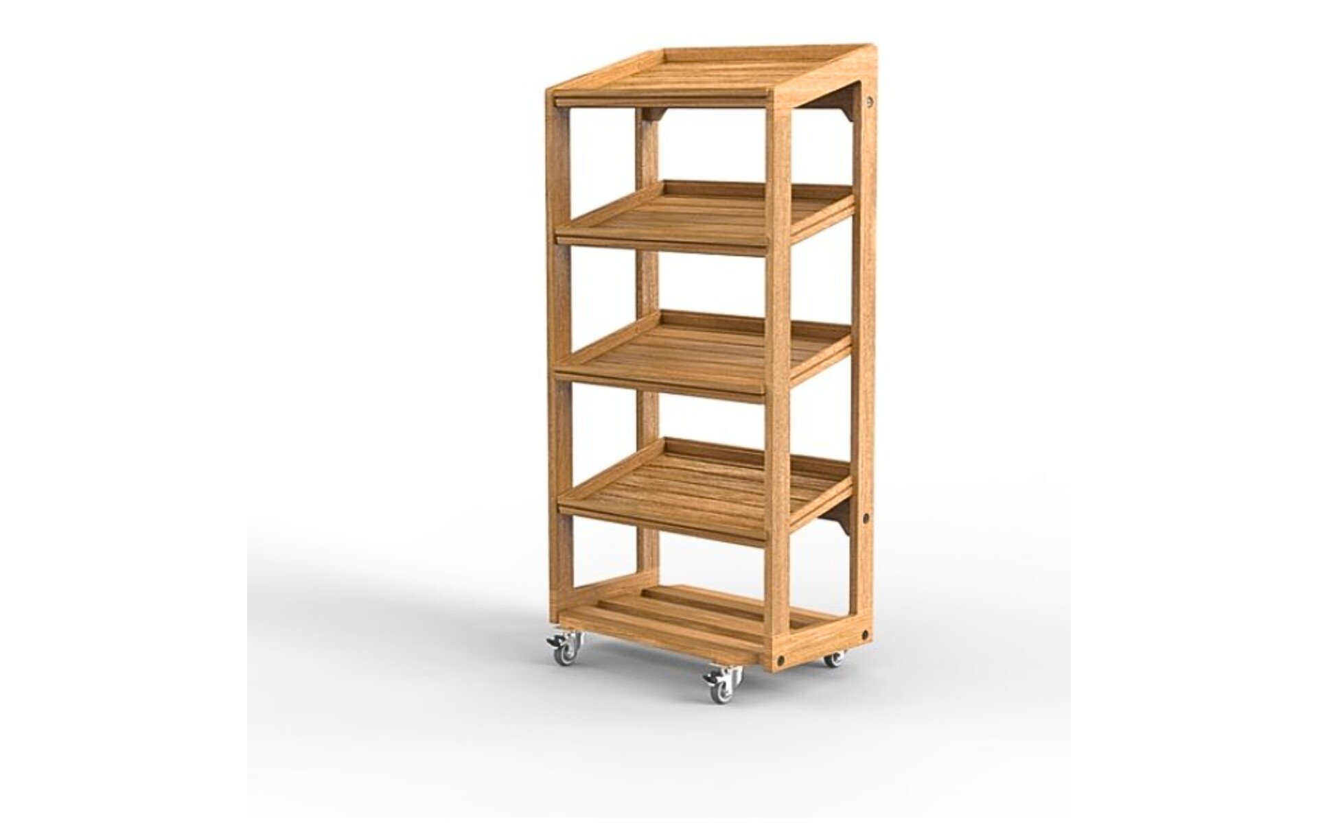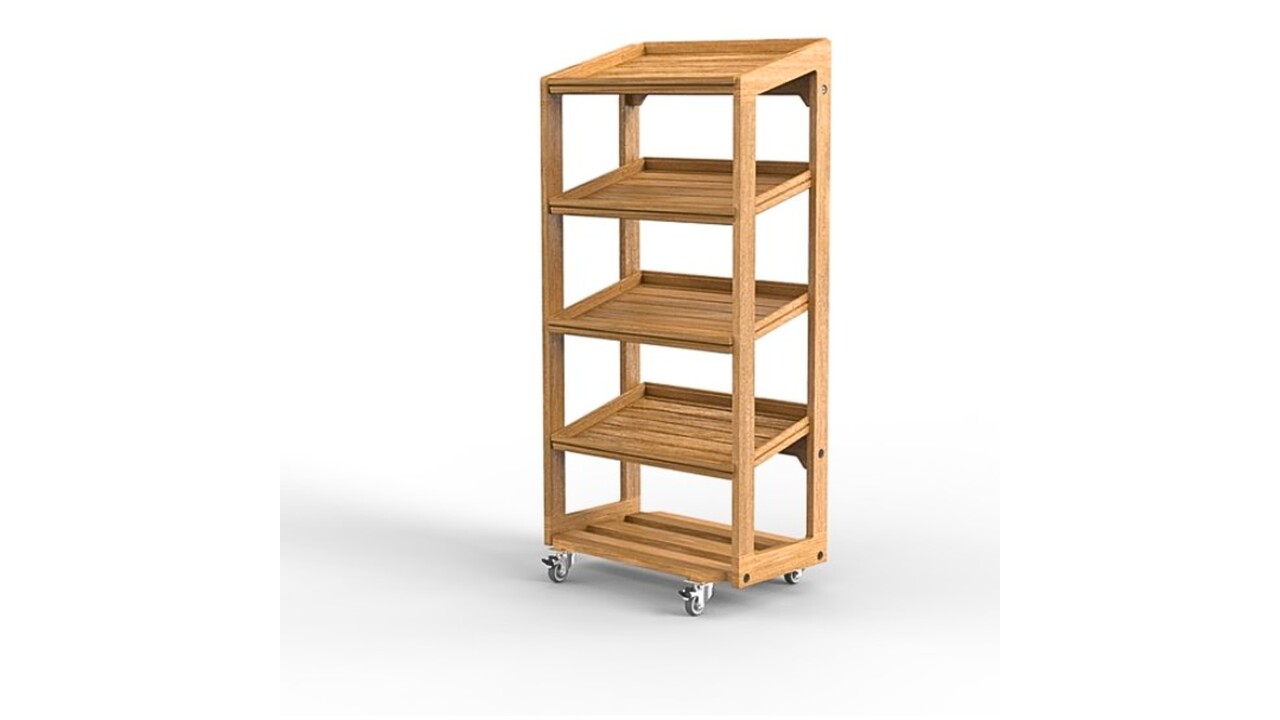 Buffet presentatie wagen eik, ideaal voor het presnteren van ontbijtkoeken en broodjes . 4 eiken dienbladen inbegrepen. Plano geleverd, zelfmontage.