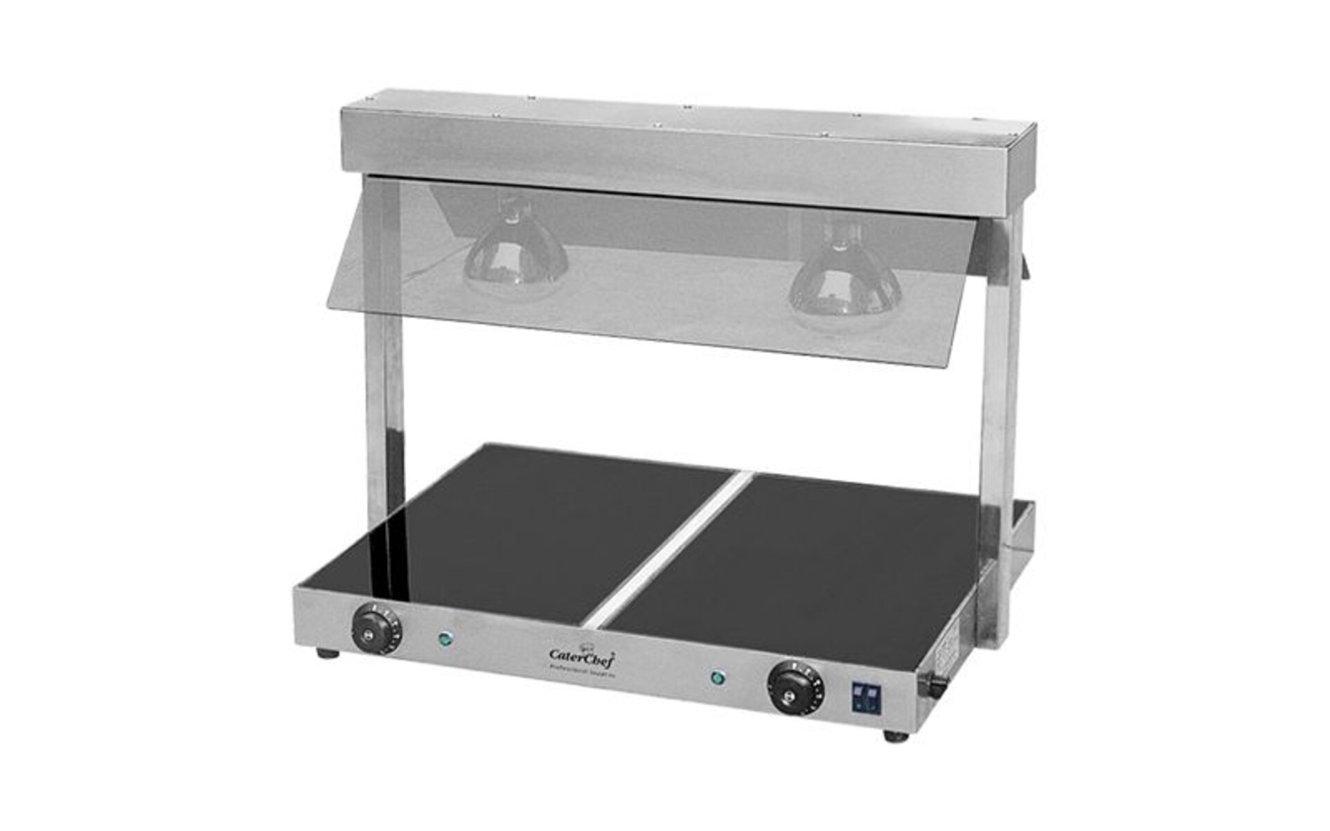 roestvrijstaal 18/10 met apart inschakelbare warmhoudplaat keramisch, 2 zones 2x 1/1GN, thermostatisch instelbaar tot 90°C, compleet met hygiënische beschermkap van acrylglas en infra-roodlampen