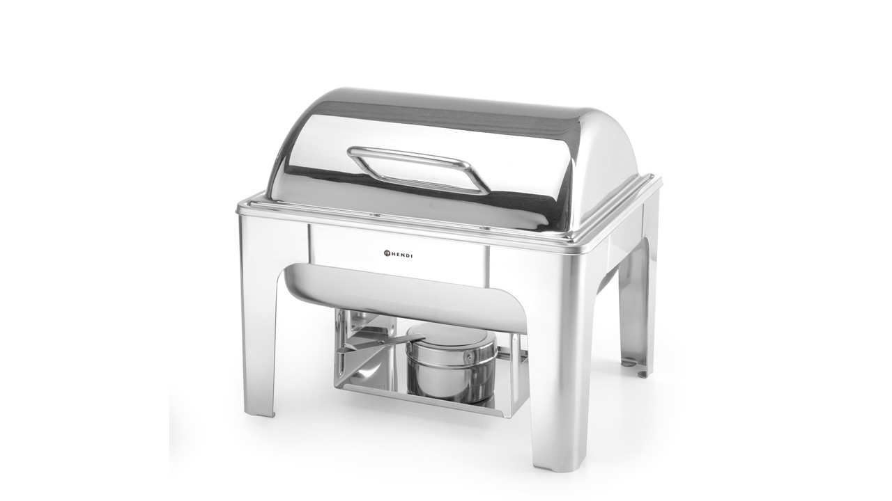 Ideaal voor buffetten en catering. Door het gebruik van hoogwaardig materiaal en fraaie afwerking geven deze chafing dishes elk gepresenteerd gerecht een zekere allure mee. De chafing dishes en accessoires zijn geheel gemaakt van duurzaam roestvast staal. De deksel is voorzien van een frictierem en kan daardoor in elke gewenste positie geplaatst worden. De deksel kan worden verwijderd om het schoonmaken te vergemakkelijken. Wordt geleverd met verwijderbare waterpan, GN 1/2 65 mm diepe voedselpan en 2 chafing dish brandstofhouders.