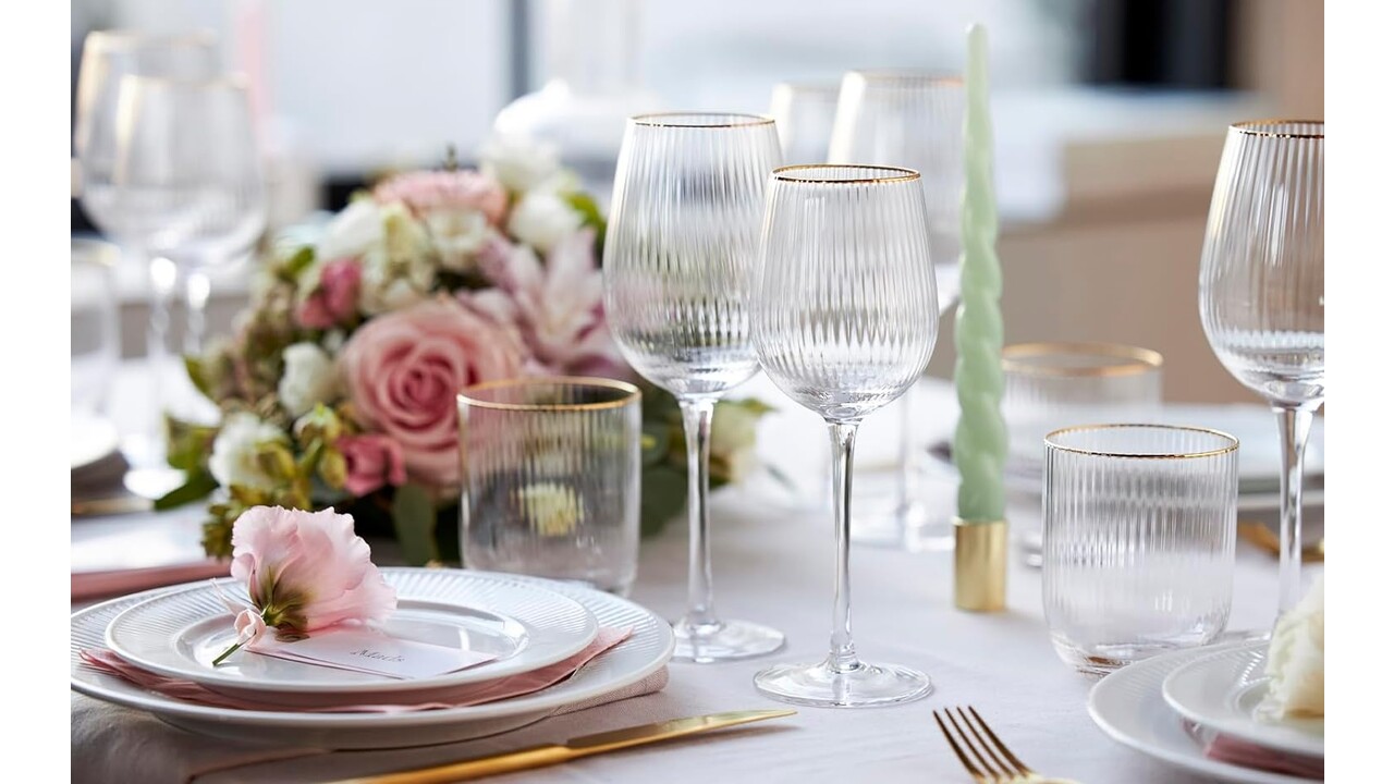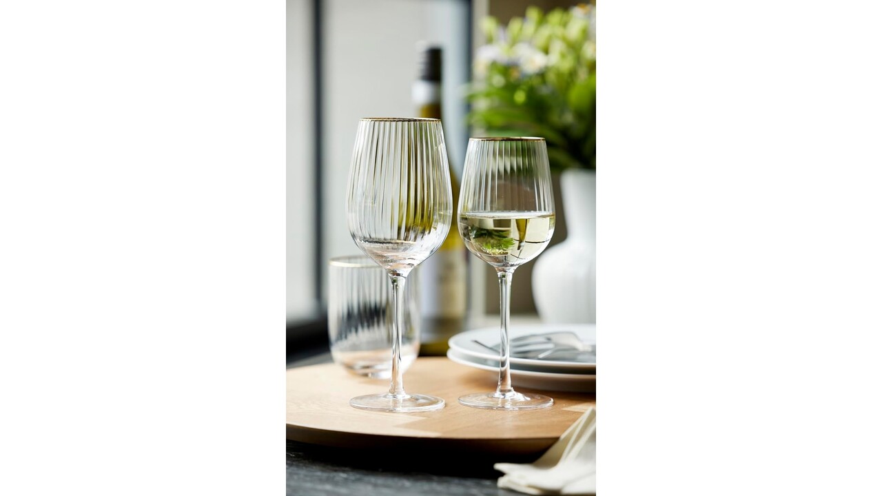 Prachtig wijnglas met een zacht gebogen silhouet. Elegant ontwerp met uitstekende gouden randen combineert huidige trends en vintage. Ook verkrijgbaar in hetzelfde assortiment: wijnglas 30 cl, Gin & Tonic 32 cl /65 cl, tumbler 35 cl.