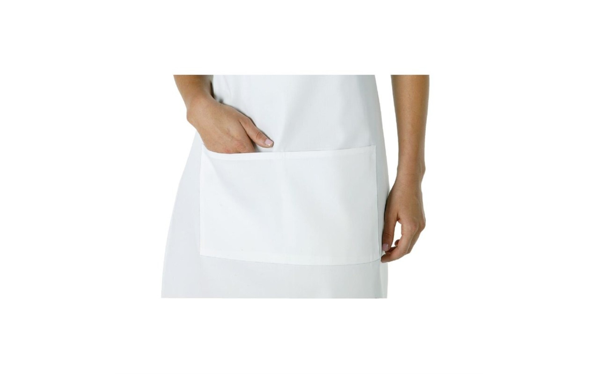 Polyester/katoenen halterschort met verstelbare halter voor een optimale pasvorm. De voorkant is extra verstevigd en voorzien van een handige dubbele zak. Ideaal voor keuken- en bedienend personeel.