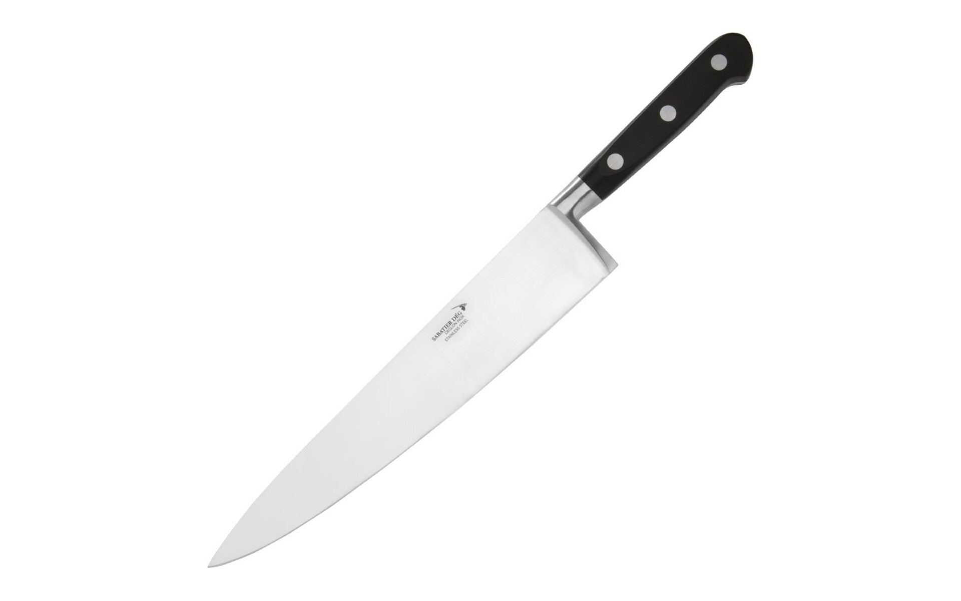 Professionele kwaliteit keukenmes van Déglon Sabatier. Dit koksmes heeft een zwart, thermoplastisch heft en een lang RVS lemmet. Sabatier messen staan bekend om hun kwaliteit en dat maakt dit mes perfect voor dagelijks gebruik in de professionele keuken.