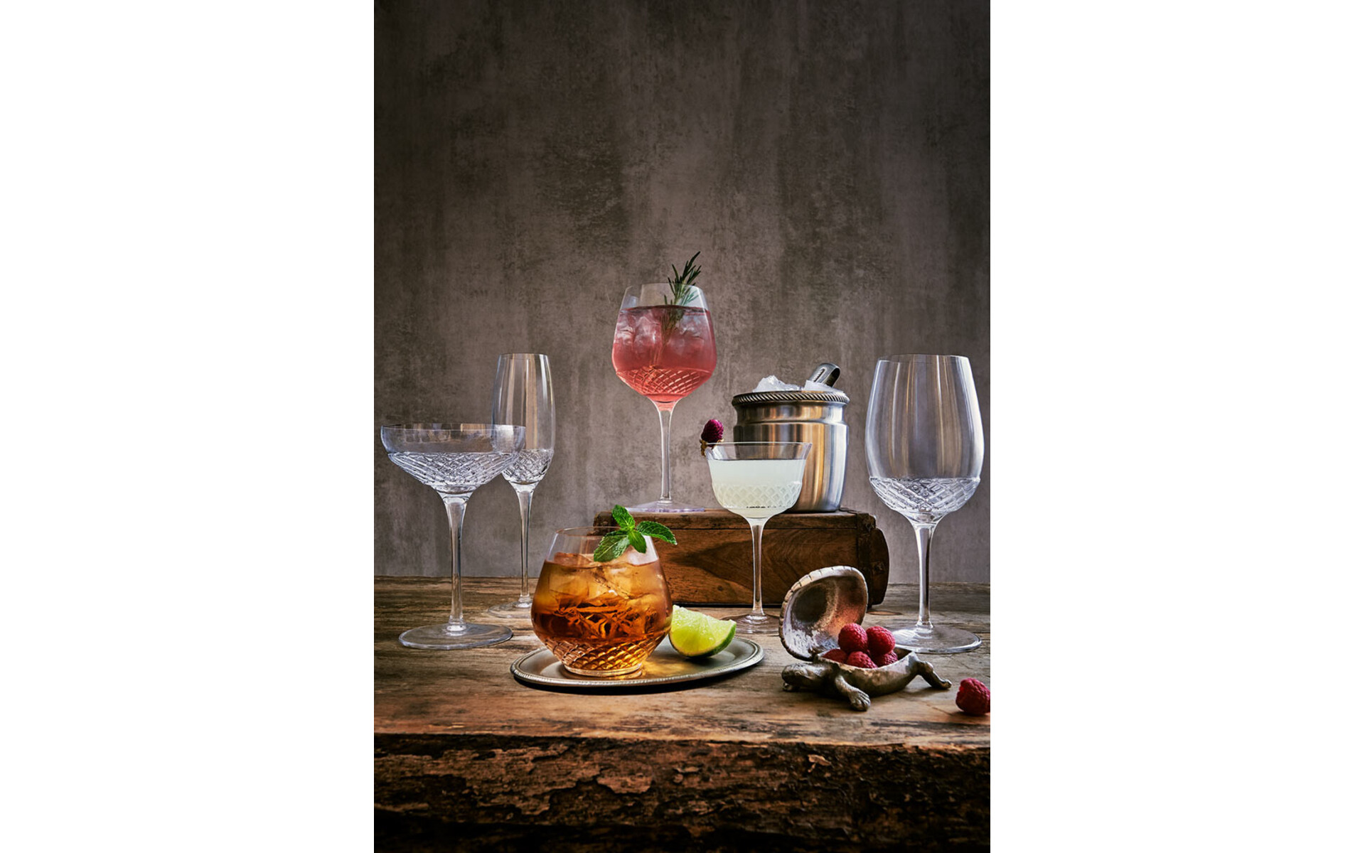 Roma 1960 wordt geproduceerd in ultrahelder SON.hyx-glas. Het glas heeft een uitstekende transparantie en schittering, gecombineerd met een extra weerstand tegen mechanische schokken en het vermogen om industriële wascycli te weerstaan.