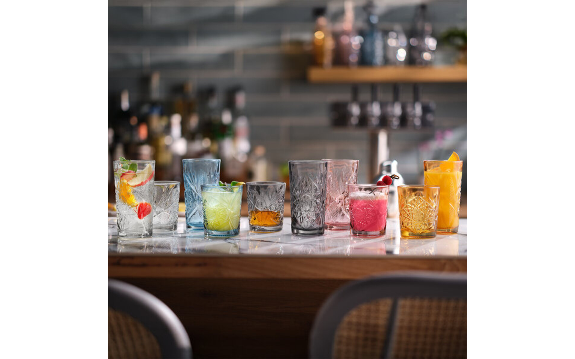 Libbey's klassieke ontwerp, de Hobstar, is een blijvende favoriet in de hedendaagse cocktailcultuur en is te vinden in bars over de hele wereld. De geëtste glaslook stamt uit Libbey's periode van briljant geslepen glas, maar is nu opnieuw ontworpen met de hoogwaardige prestatiekenmerken van vandaag. Herontdek een klassieker en geef hem een moderne twist met glamoureuze presentaties die hun glans nooit verliezen. Kenmerken: Het zware gewicht, de brede bovenkant en de grote inhoud van de Hobstar zorgen voor de juiste verhoudingen van ingrediënten. Het ontwerp is ideaal voor stijlvolle presentaties van klassieke cocktails, met name whiskycocktails. Biedt het juiste glaswerk voor herinterpretaties van klassiekers. Zoals al het glaswerk van Libbey, voldoen de ontwerpen aan de hedendaagse behoeften met de juiste stijlen voor de laatste trends, terwijl ze tegelijkertijd betrouwbare prestaties en duurzaamheid garanderen.