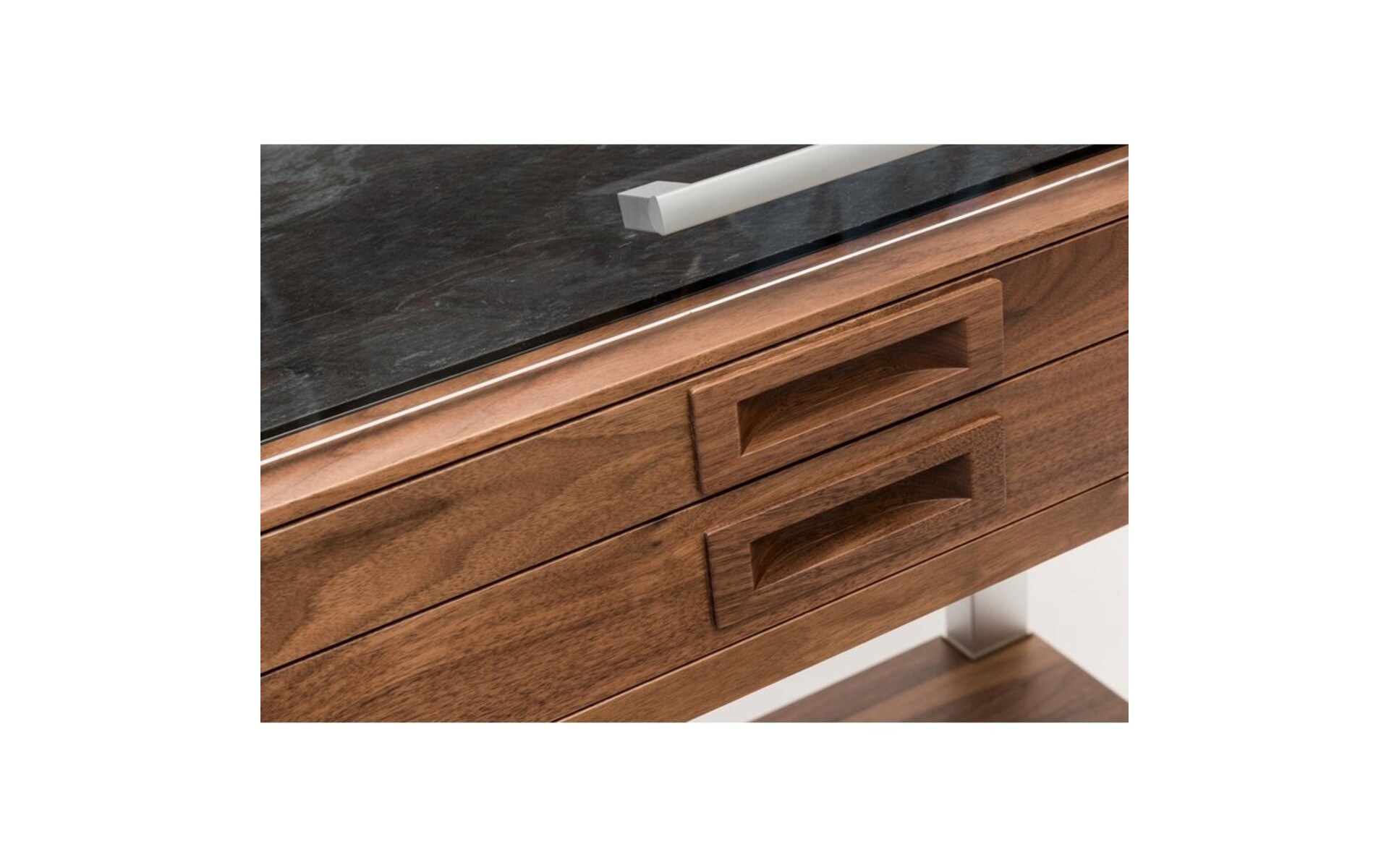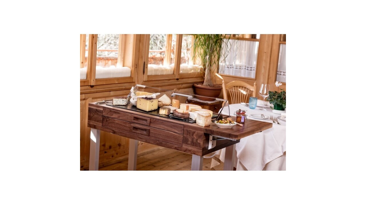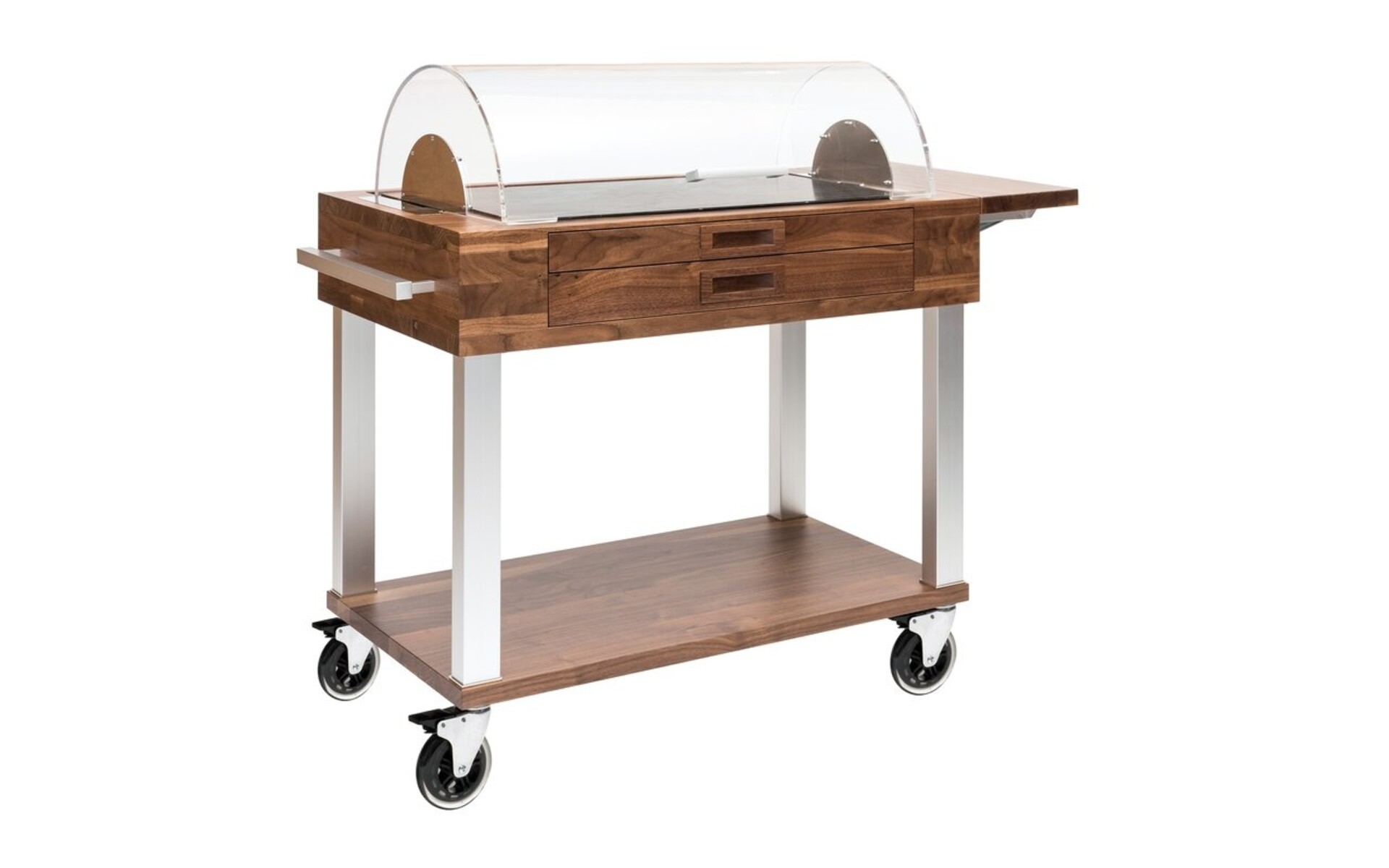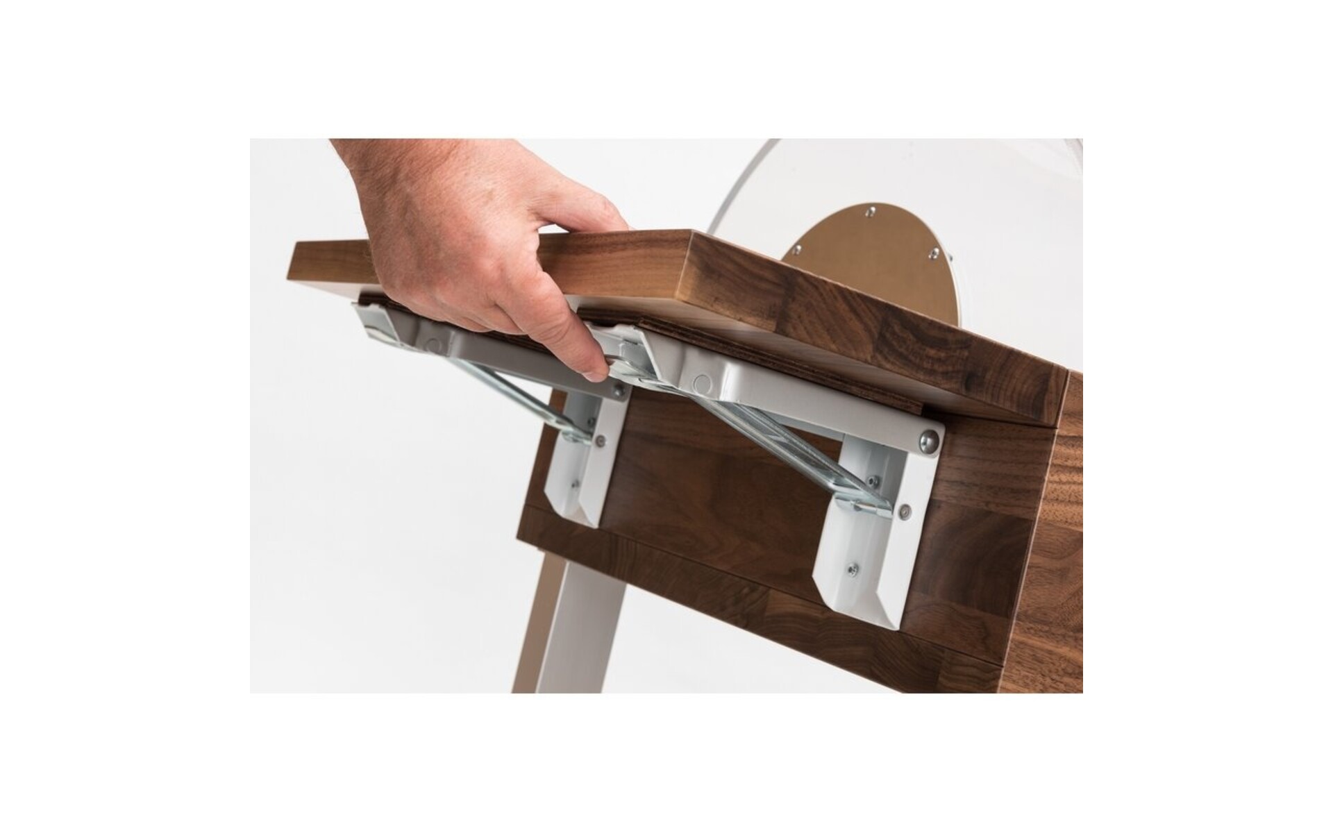 Opklapbaar werkblad aan één korte zijde met eenvoudig te bedienen hefmechanisme