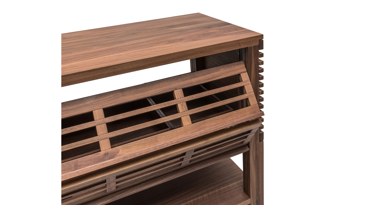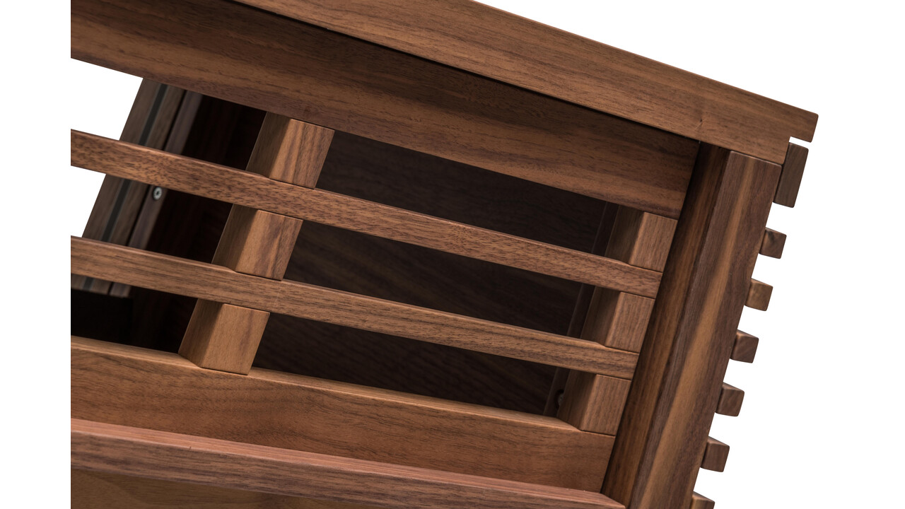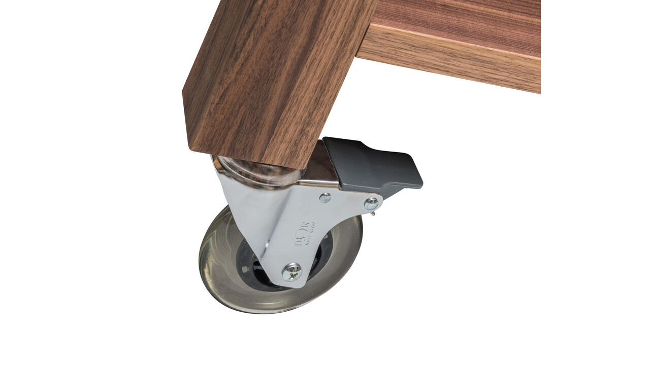 Display buffetwagen in walnootkleur. Deze trolley bestaat uit twee zijkleppen die geschikt zijn om het bovenoppervlak te verlengen. De voor- en achter- opvouwbare roosters (die twee twee hellende oppervlakken vormen aan beide kanten om twee GN 1/1-trays en twee GN 1/2-trays te positioneren) zijn inbegrepen in de prijs.