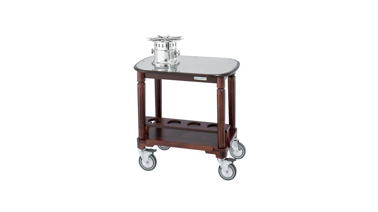 Deze serveerwagen uit de "Versailles"-serie is speciaal ontworpen voor exclusieve luxe hotels en restaurants. Deze flambeerwagen is voorzien van 1 gas brander.