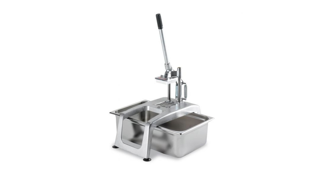 Ideaal voor het snijden van frietjes Inclusief één friet pers en rooster van 10x10 mm Capaciteit 100 tot 150 kg per uur GN bak apart te bestellen , niet inbgrepen