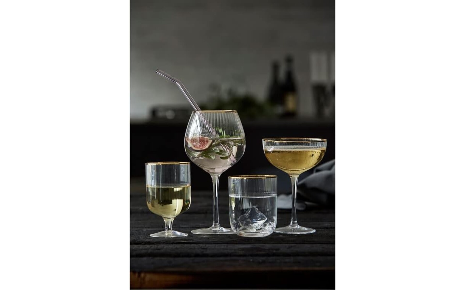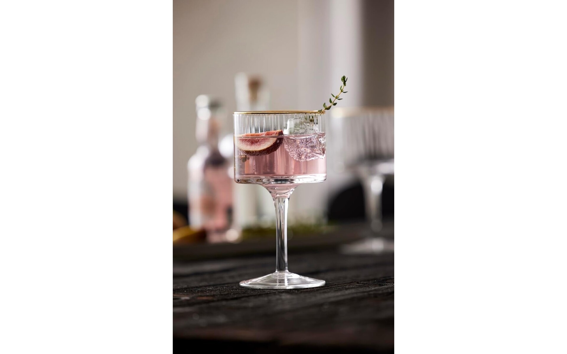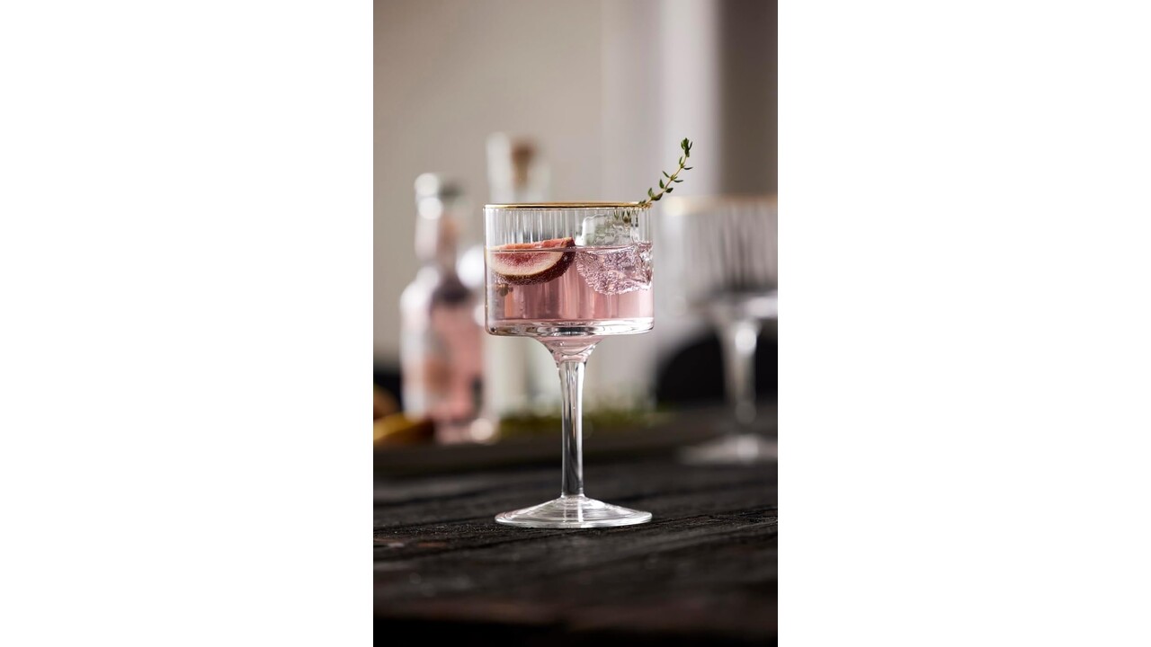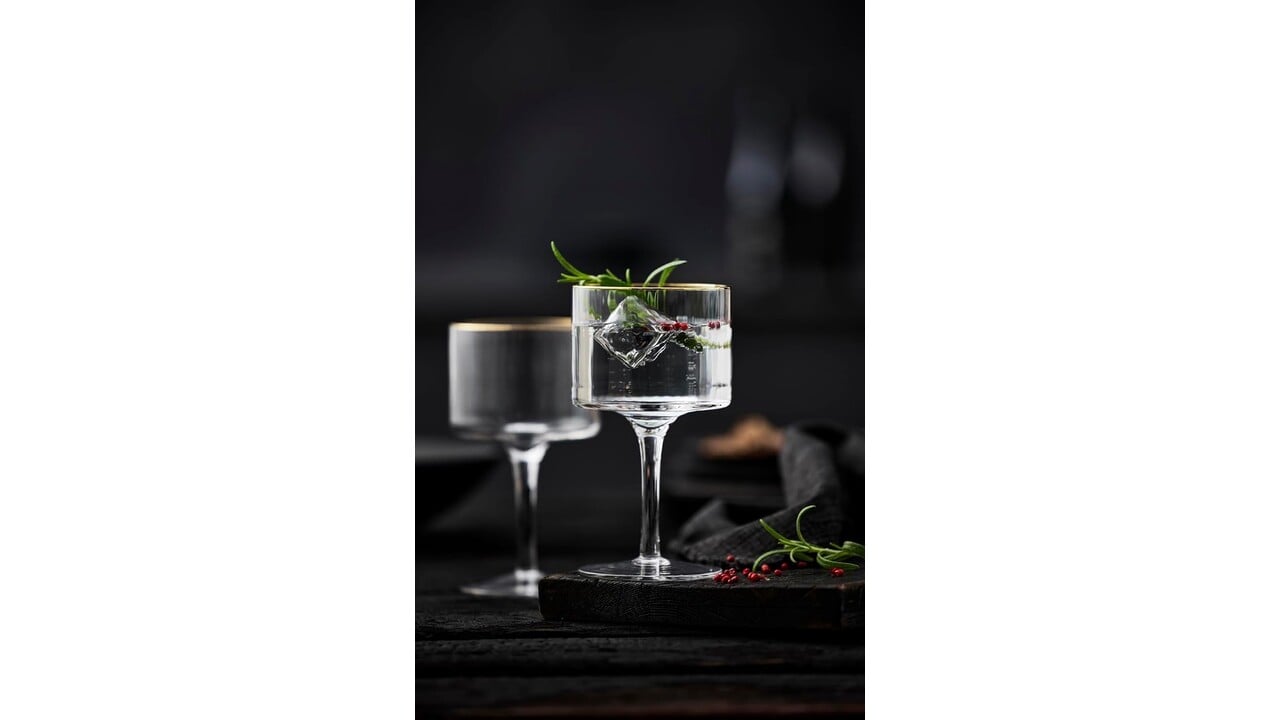 Prachtig cocktailglas met een zacht gebogen silhouet. Elegant ontwerp met uitstekende gouden randen combineert huidige trends en vintage. Ook verkrijgbaar in hetzelfde assortiment: wijnglas 30 cl, wijnglas 40 cl, Gin & Tonic 65 cl, tumbler 35 cl, coupe 31,5 cl.