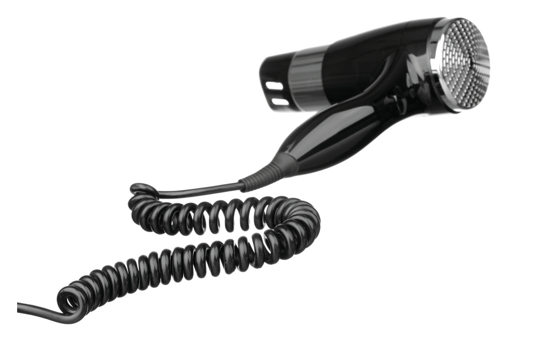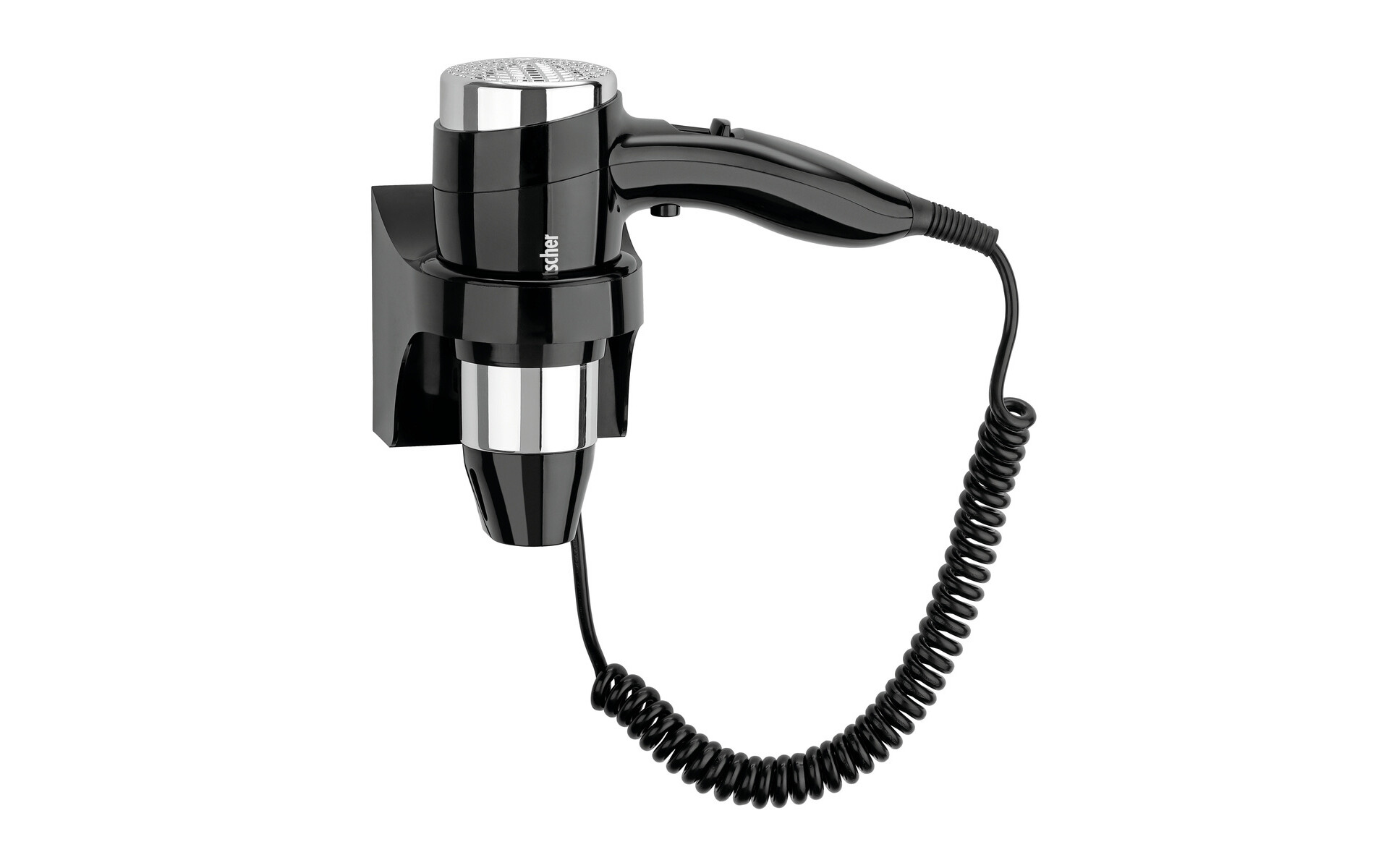 In hotelkamers, B & B of pensions of scheepshutten is deze hotelhaardroger een onmisbare aanvulling. Met zijn elegante zwarte design verfraait deze haardroger moeiteloos elk interieur, terwijl de lange spiraalkabel hoge flexibiliteit biedt bij de plaatsbepaling voor wandmontage.