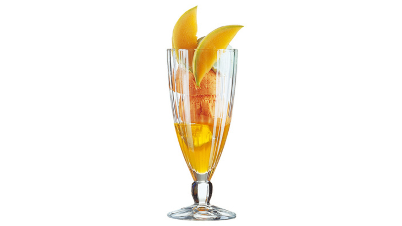 De Quadro-collectie omvat twee glazen die perfect zijn om een banana split of milkshake te presenteren.