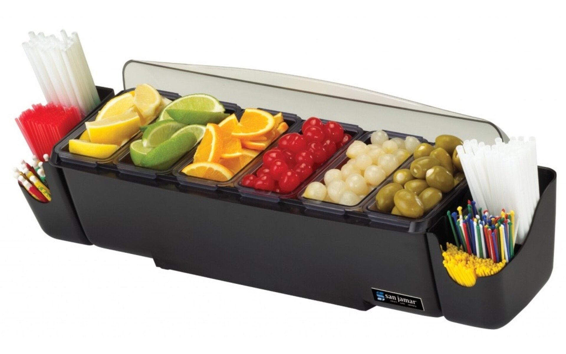 Dit garneercenter heeft 5 bakken voor verschillende producten en is een geweldige aanwinst voor iedere horecagelegenheid. De deksel klapt achter de unit weg, beschermt de inhoud van de bakken en dankzij de vorm zorgt hij voor nog meer capaciteit, omdat u de ingrediënten hoger kan stapelen.