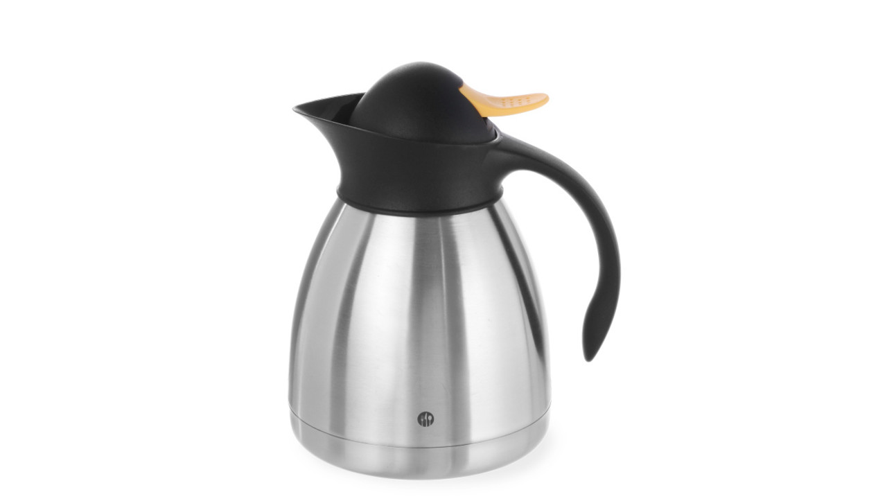 Isoleerkan 1 liter dubbelwandig roestvrijstaal met gele drukknop