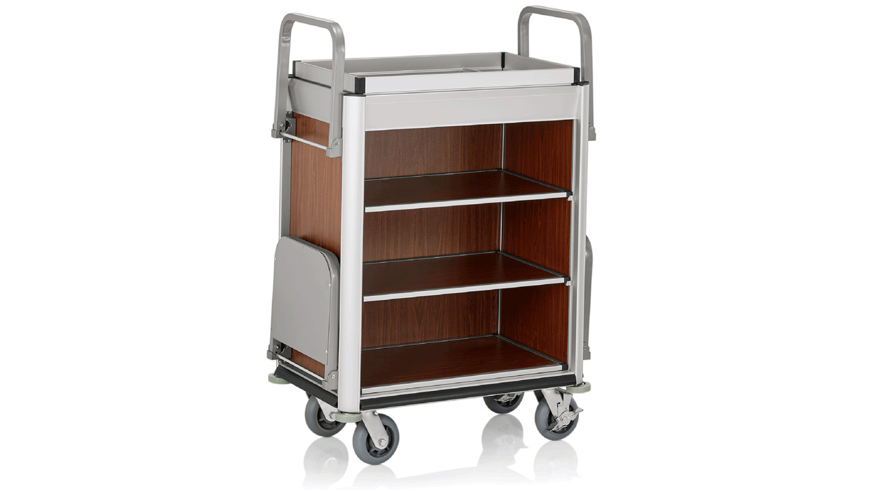 Kamermeisjeswagen Aluminium frame met MDF in donkere houtlook