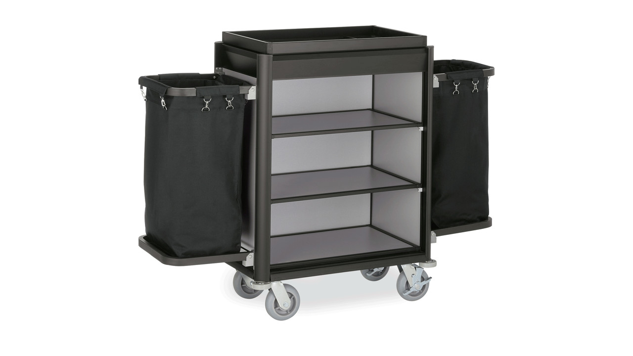 Kamermeisjeswagen zwart aluminium frame met MDF aluminium look
