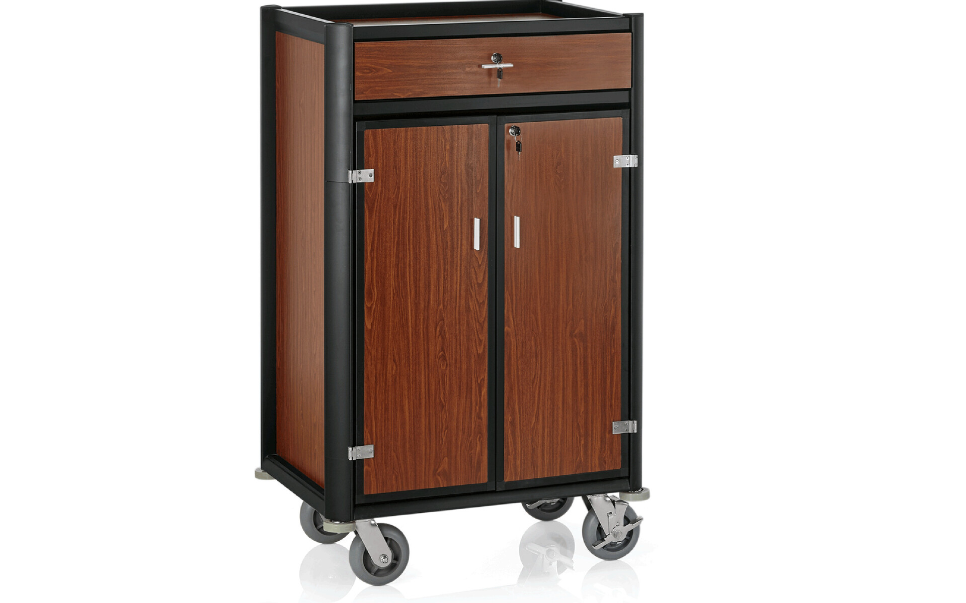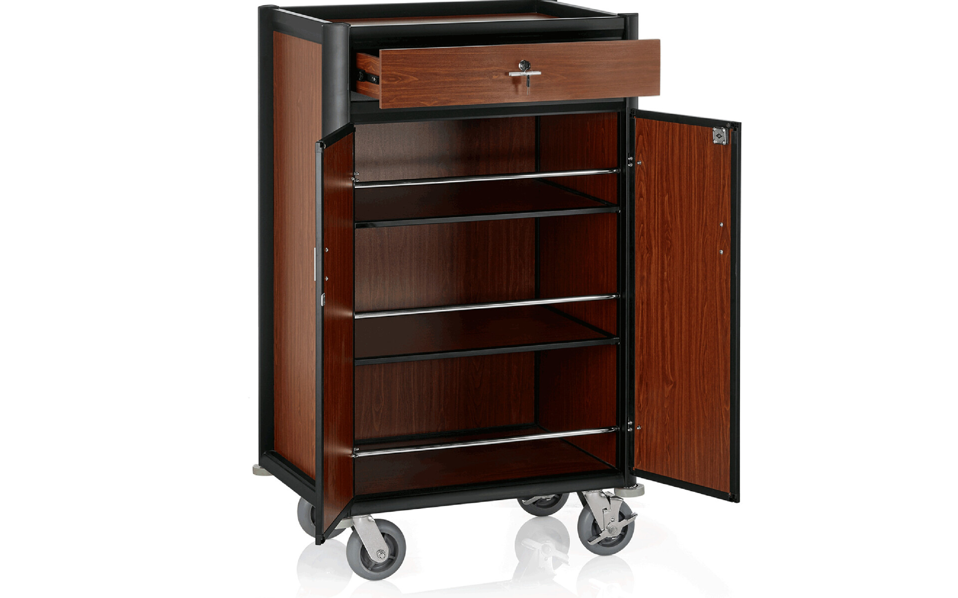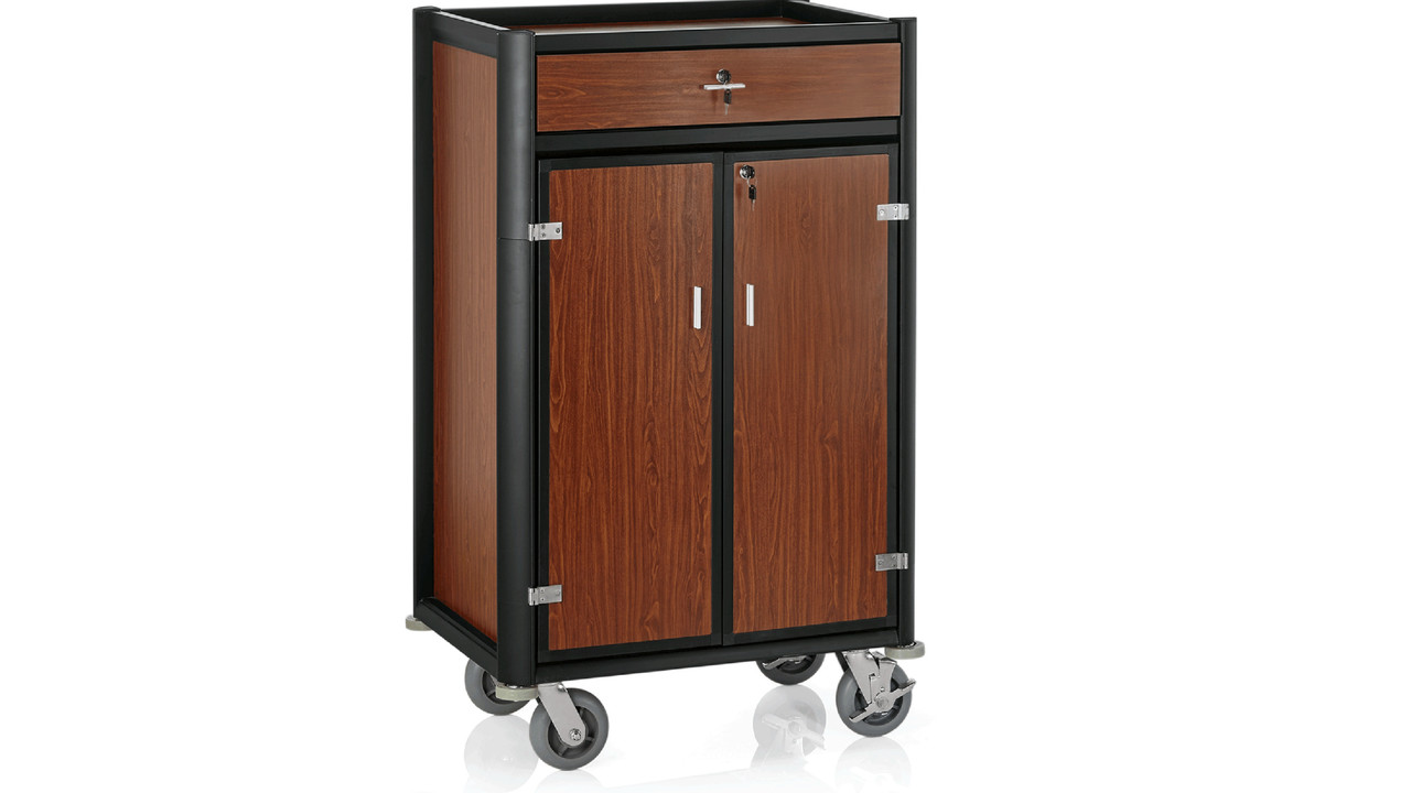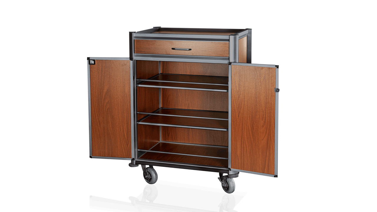 Minibar wagen zwart aluminium frame met MDF donker hout look
