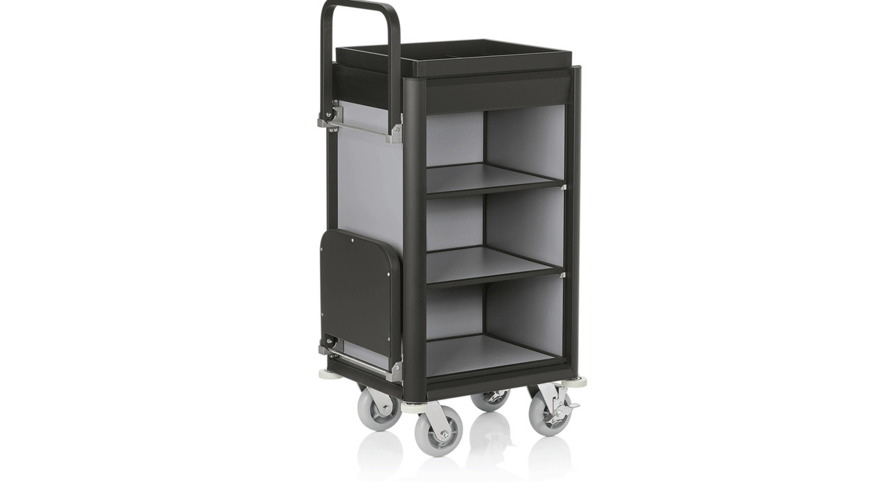 Kamermeisjeswagen zwart aluminium frame met MDF in aluminium look