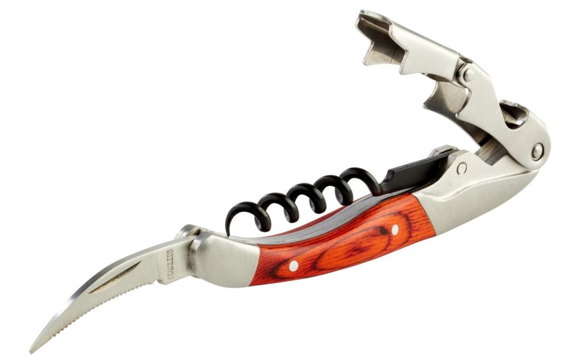 Moeiteloos bewegende te onspiraal, 2-staps openingssysteem, mes aan het bovenuiteinde. Zware professionele uitvoering.