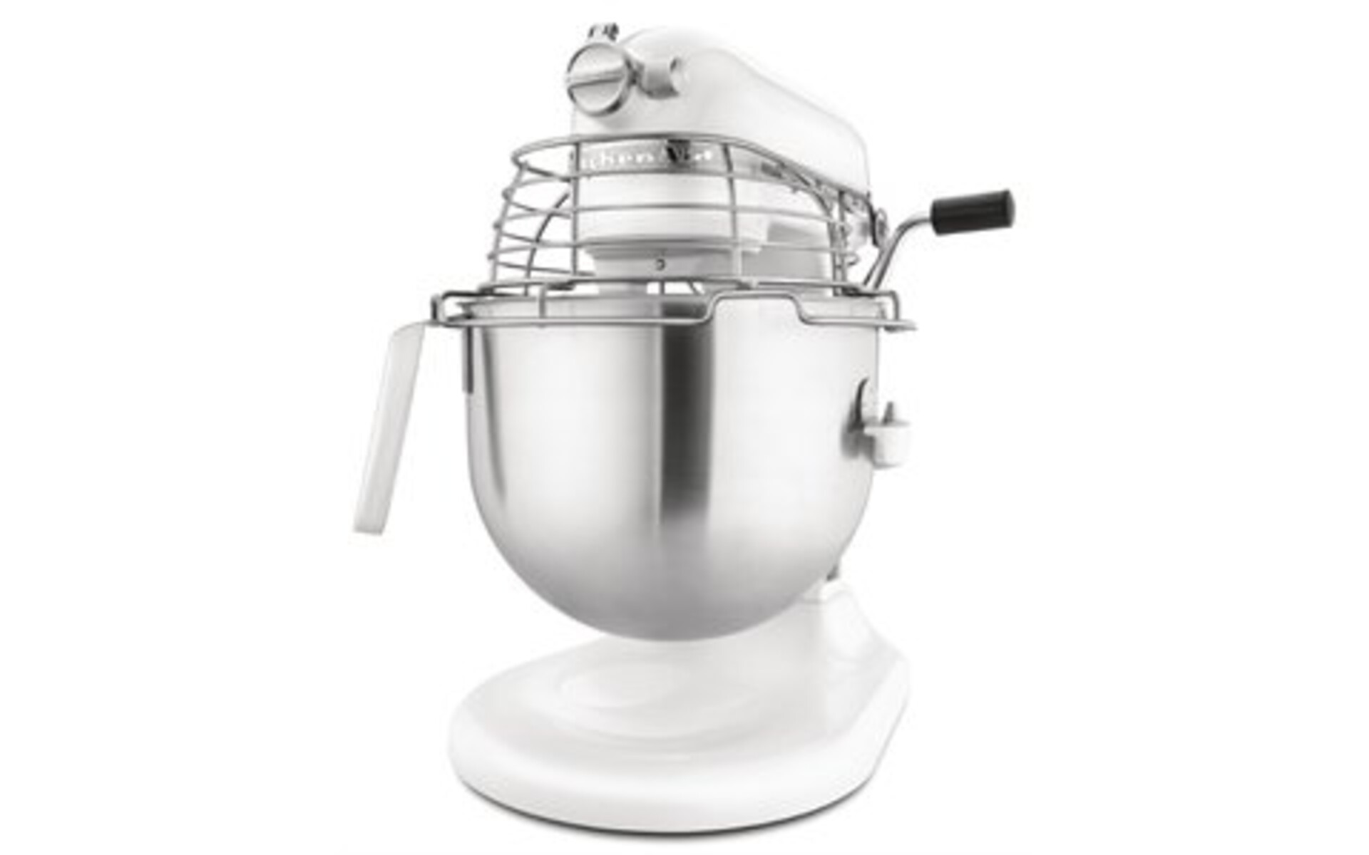 Een sterke maar geluidsarme mixer van KitchenAid met een liftmechanisme voor zware inhouden. 6,9 liter kom voorzien van J hendel voor betere controle en 1,3 pk motor. Drie vaatwasmachine veilige mix hulpstukken. Deze mixer verwerkt 19 eieren, 1,9ltr slagroom, 4,5kg beslag, 3,8kg deeg en 3,6kg puree.