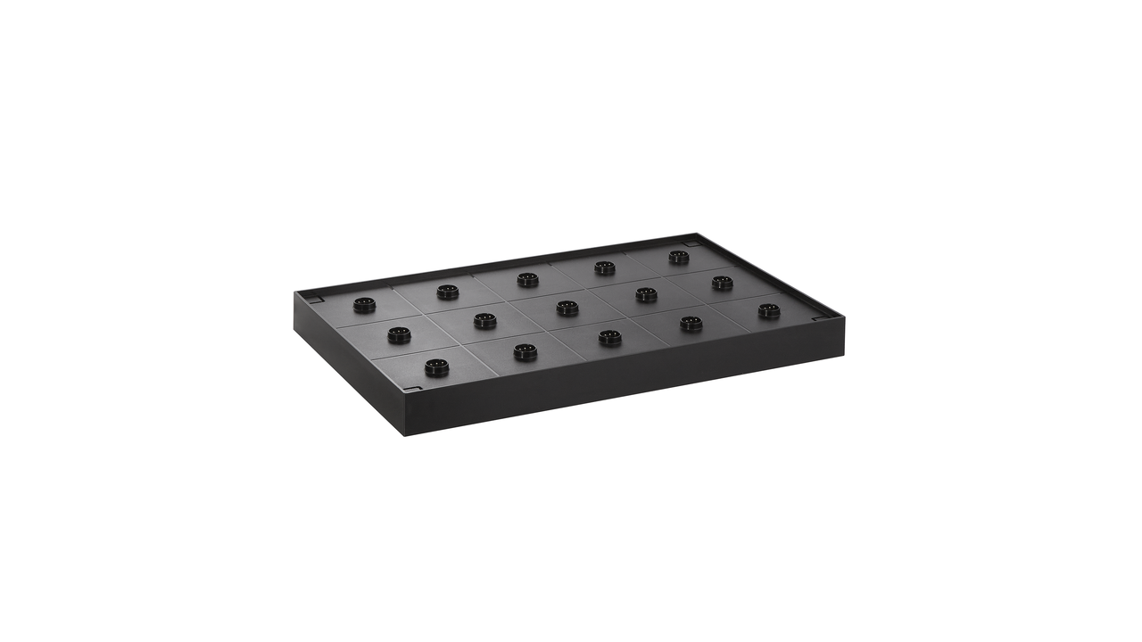 - Ruimtebesparend laadstation voor maximaal 15 lampen, stapelbaar met insteekstrips voor meerdere niveaus