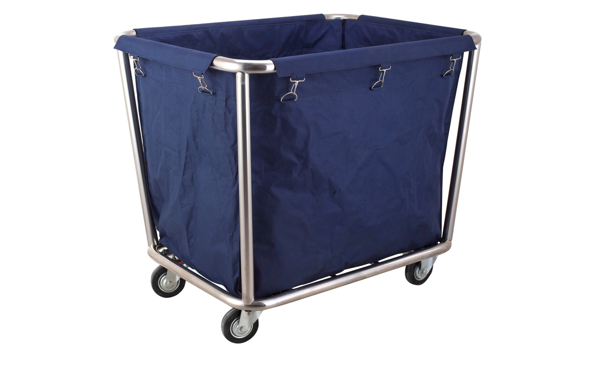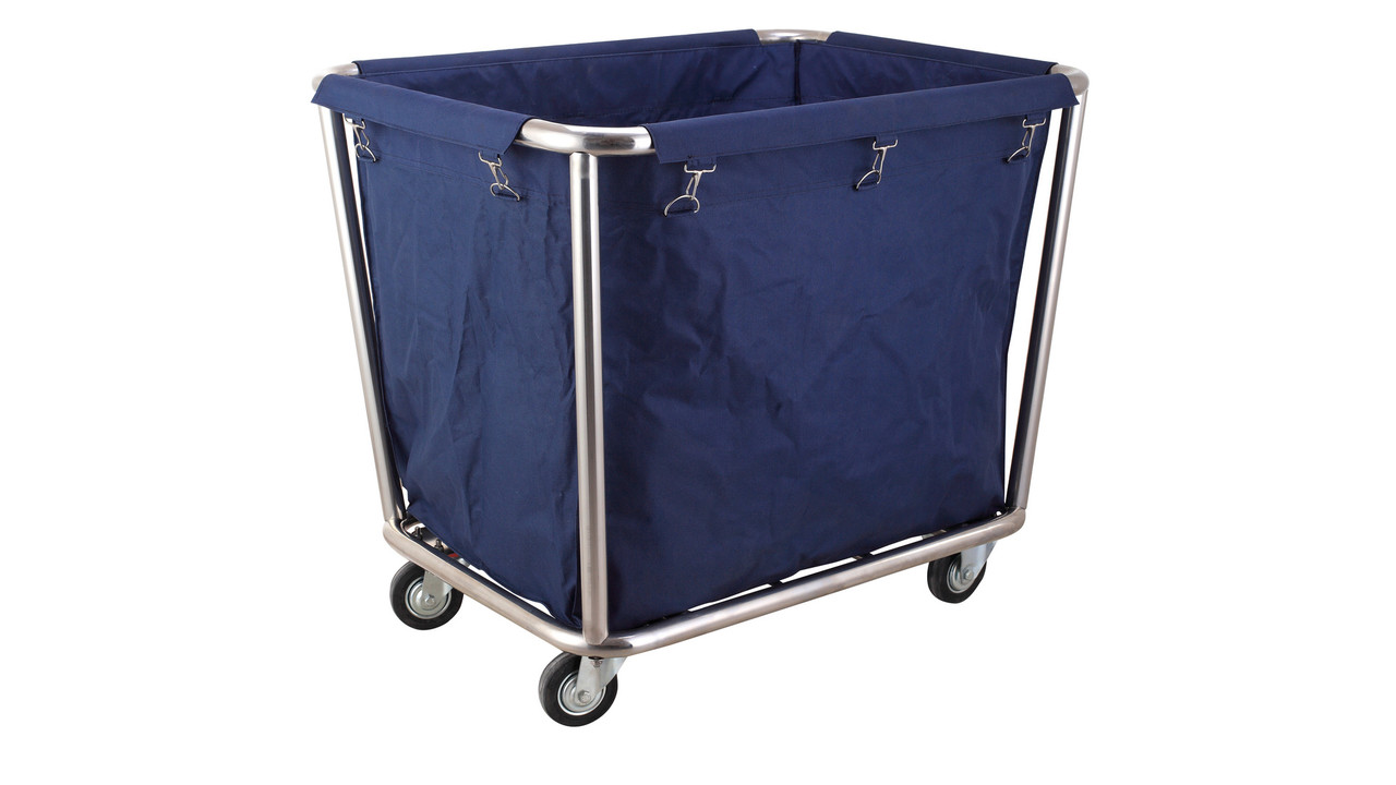 Roestvrijstalen structuur met afneembare waszak. De waszak is van Oxford materiaal en is wasbaar. Voorzien van 4 wielen waarvan er 2 zwenkwielen zijn.