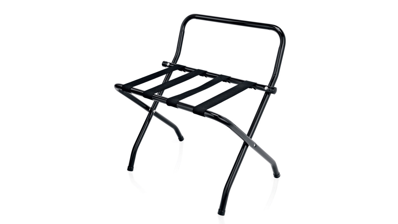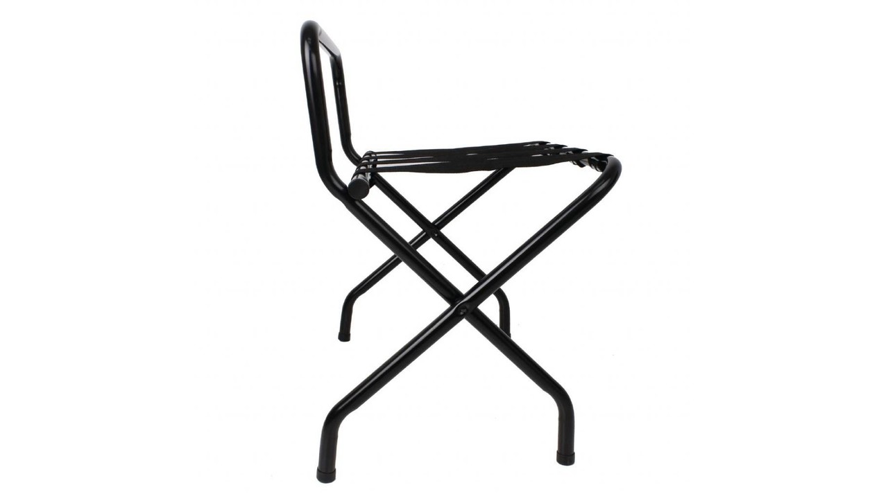Deze stijlvolle zwarte kofferstandaard is zowel stevig en praktisch als aantrekkelijk. Het sterke band biedt goede ondersteuning en de duurzame buisconstructie is voorzien van een mooie zwarte coating.