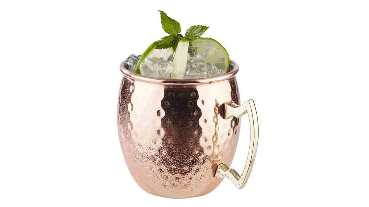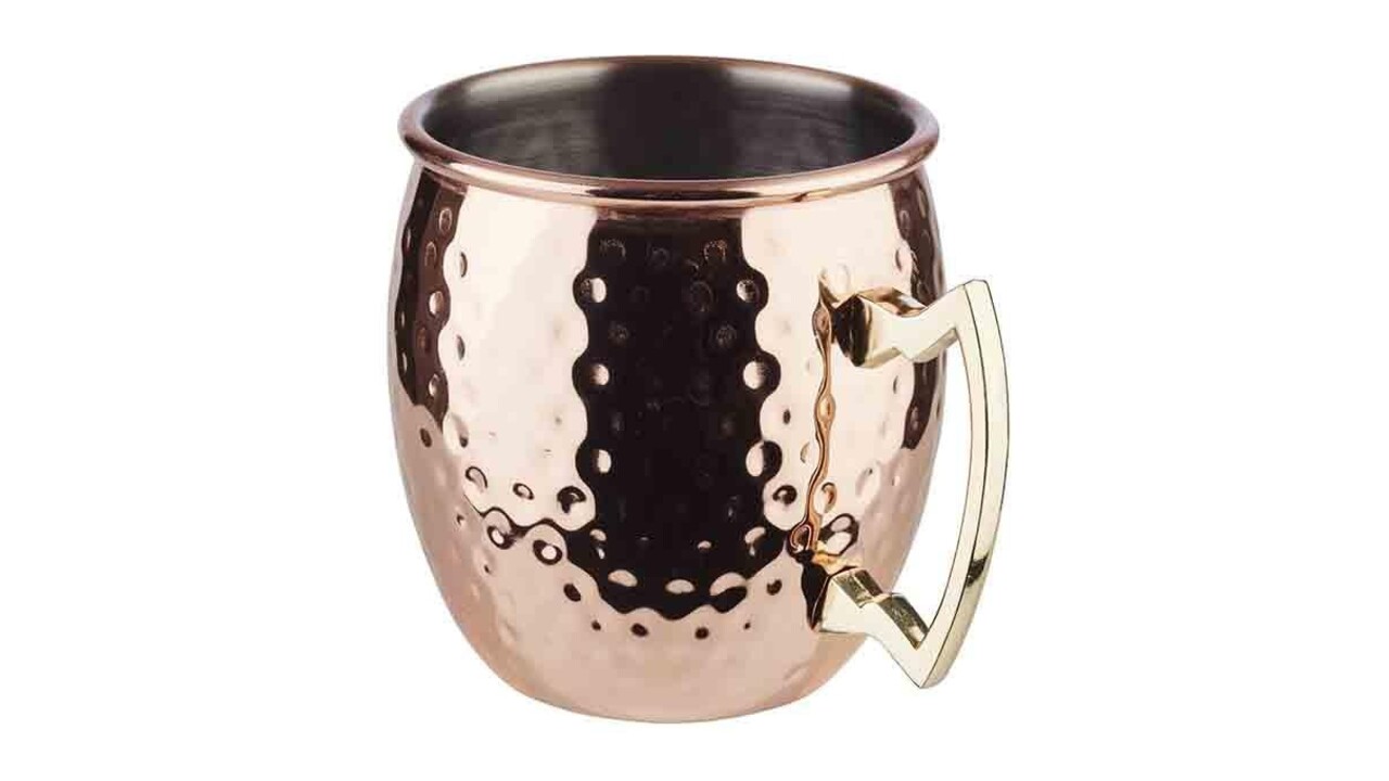 Deze Moscow Mule is gemaakt van roestvrijstaal met een "copper look".