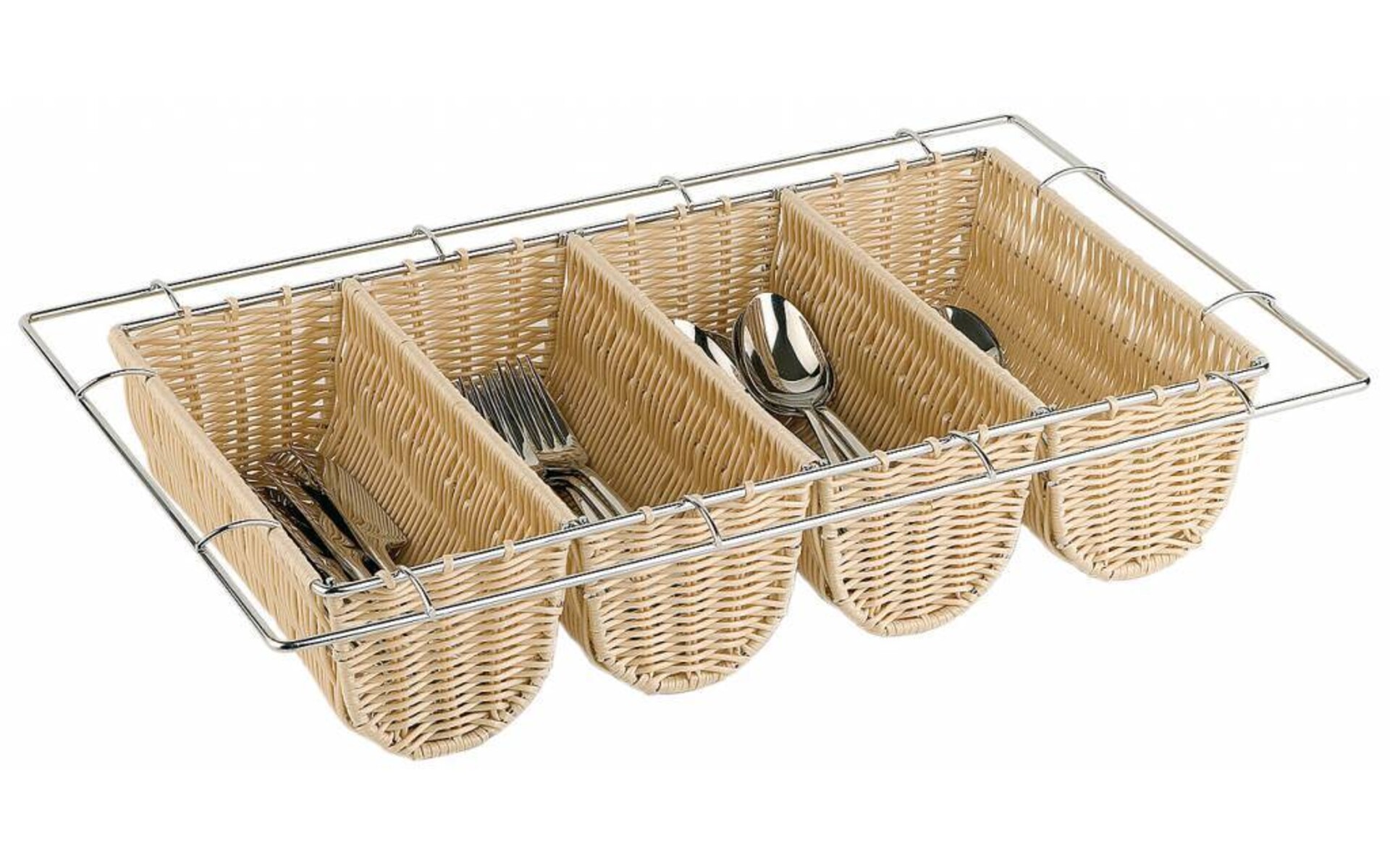 Gemaakt van stevig PP, verstevigde verchroomde kader, bestek NIET inbegrepen.