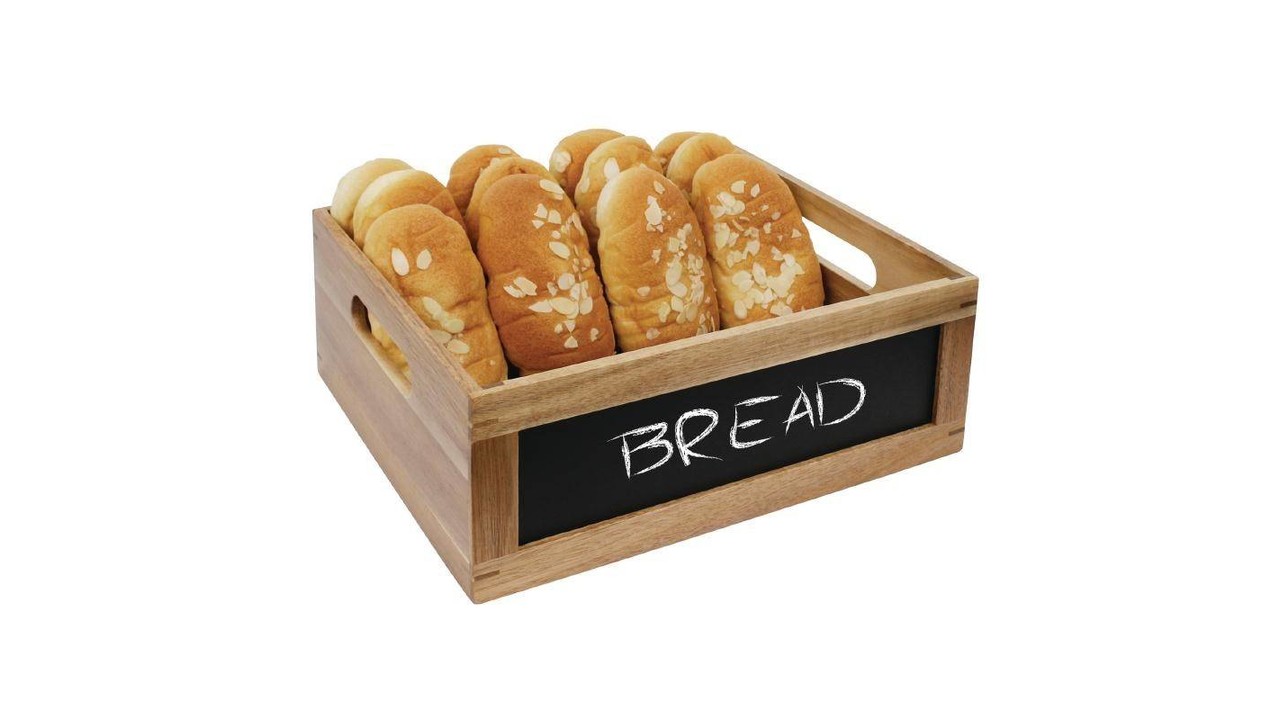 1/2 GN houten krat, voorzien van één zijde met krijtbord voor het eenvoudig labelen van etenswaren. Te gebruiken met krijtbordstiften. Gemaakt van acaciahout niet vaatwasmachine bestendig !