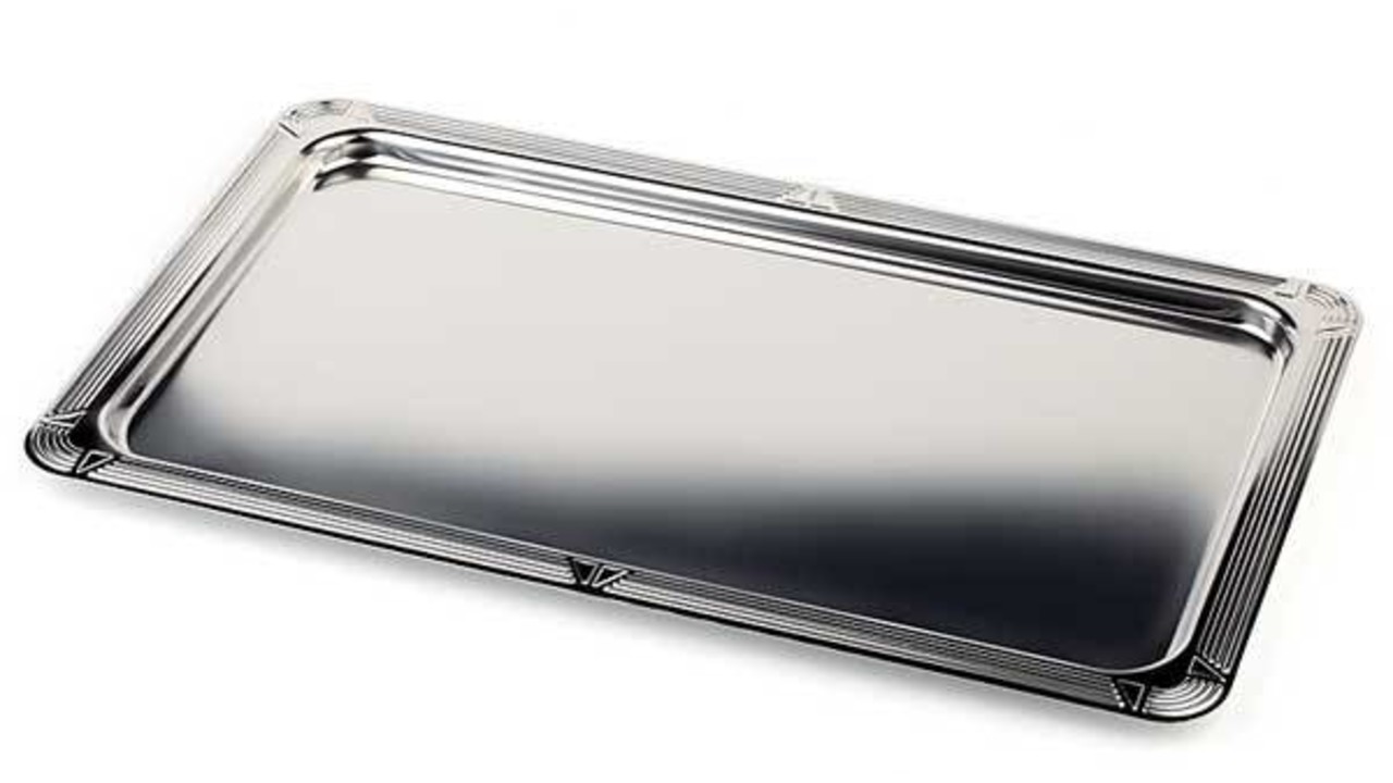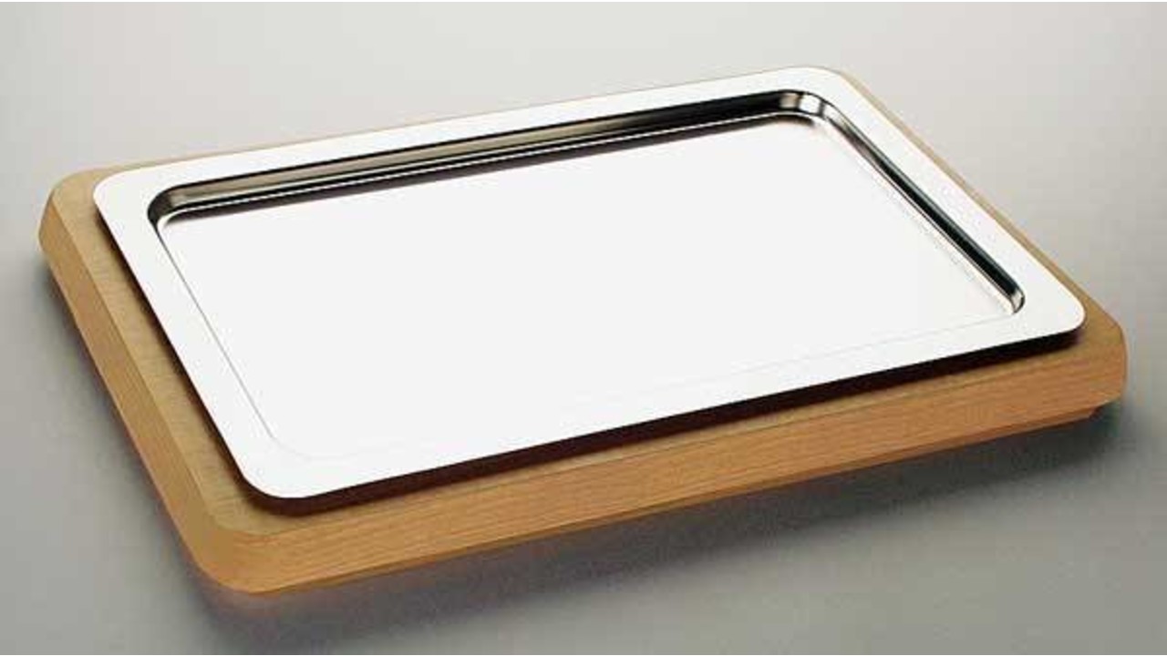 Buffet set inclusief 1 roestvrijstalen plateau GN 1/1, houten onderlegger waterproof, 1 roll-top klok met verchroomd handvat en 2 koelelementen
