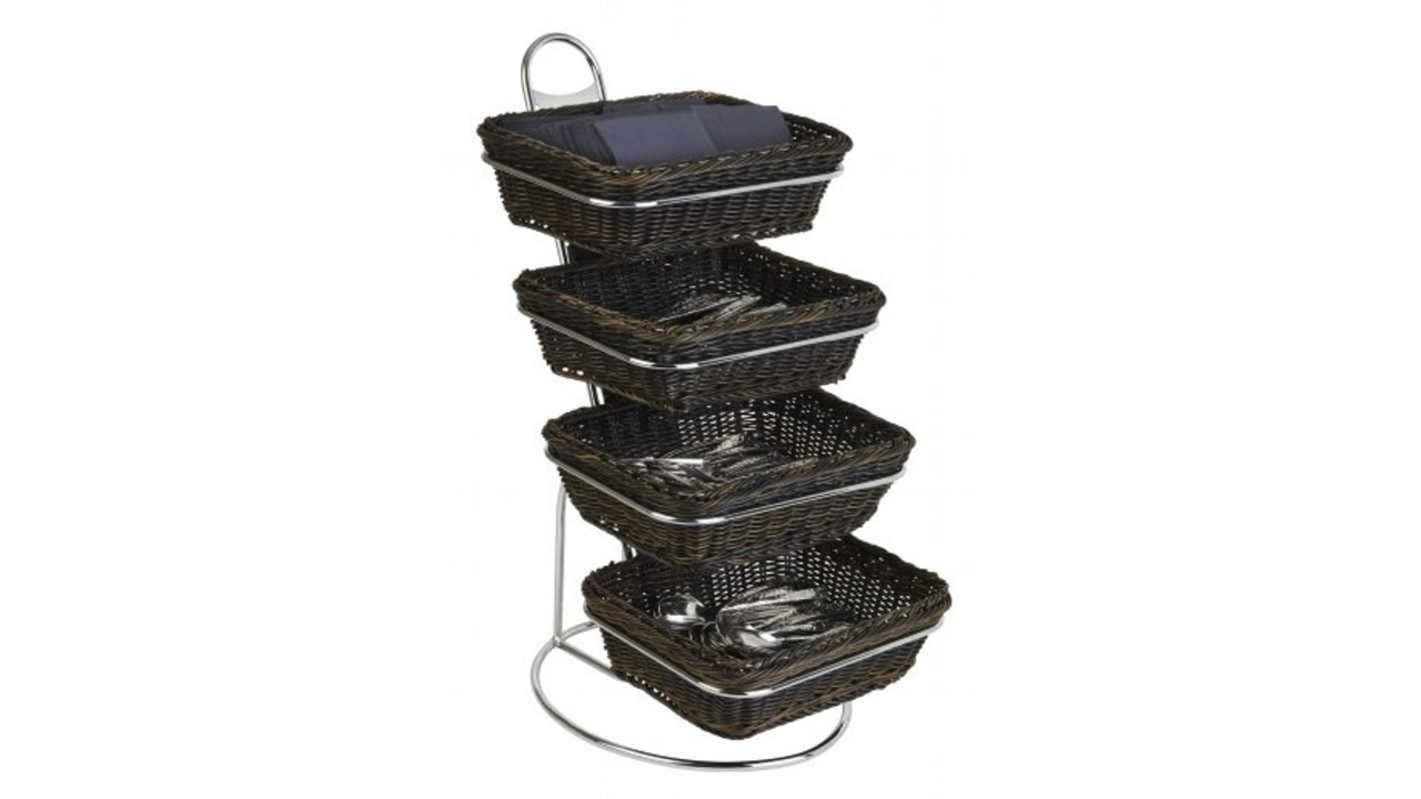 9 delige set omvattende 1 ladder, 4 houders voor mand en 4 GN 1/2 versterkte kunststof manden afm. 32,5 x 26,5 x H 10 cm