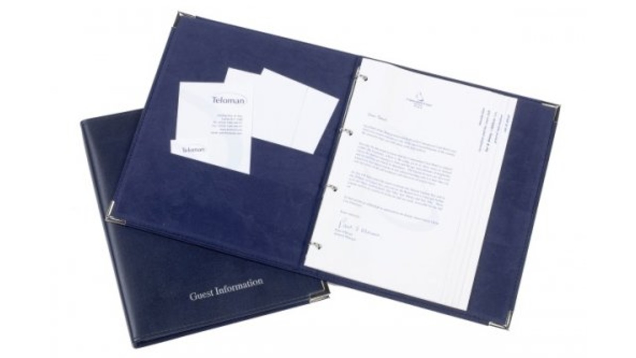 Model Din A4 goudkleurige hoeken met 4 ringen bedrukt in goud " Guest Information "