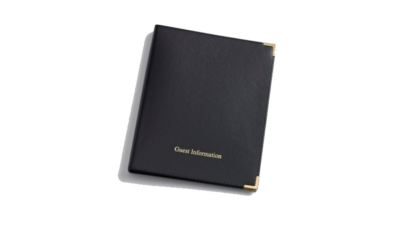 Model Din A4 goudkleurige hoeken met 4 ringen bedrukt in goud " Guest Information "