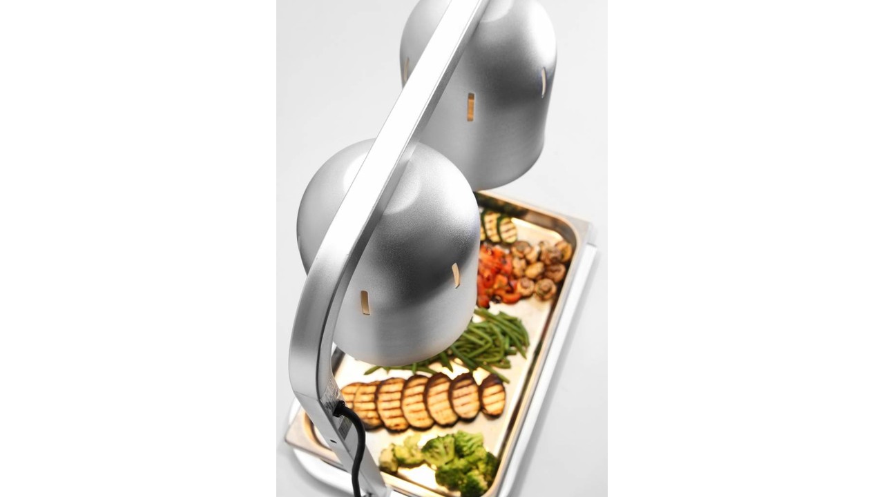 Ideaal voor het warmhouden van gerechten tussen bereiding en serveren. In hoogte verstelbaar. Versplinteringsbestendige lampen inbegrepen. Afm. 495x355x(H)590 mm 230 Volt 500 Watt