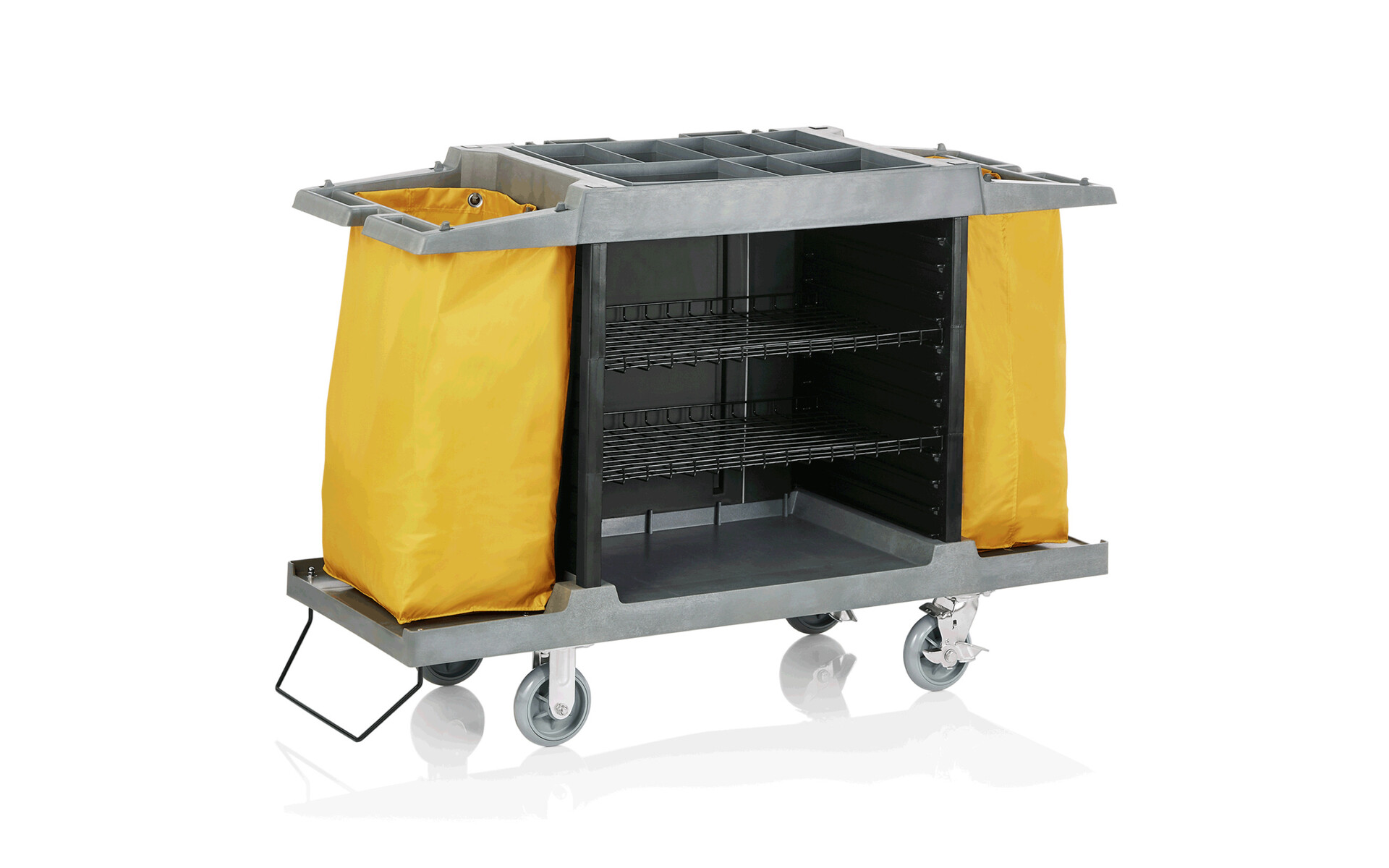 Een complete oplossing voor de huishouding. Duurzame kunststof wagen met twee uitwasbare nylon zakken. Voorzien van verstelbare schappen, bumpers en streeploze wielen. Afmeting (mm) 985(h)x540(b)x1500(I). Gewicht 33,6kg. Inclusief 2 nylon zakken van 77 liter. Dit artikel wordt plano in doos, ongemonteerd geleverd.