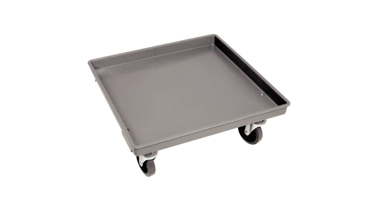 Stevige polypropylene vaatwaskorf wagen. Draagvermogen 40kg. Voorzien van 4 wielen. Afmeting 538(h)x538(b)x210(h). Gewicht 2,5kg Geschikt voor korven van 50x50 cm