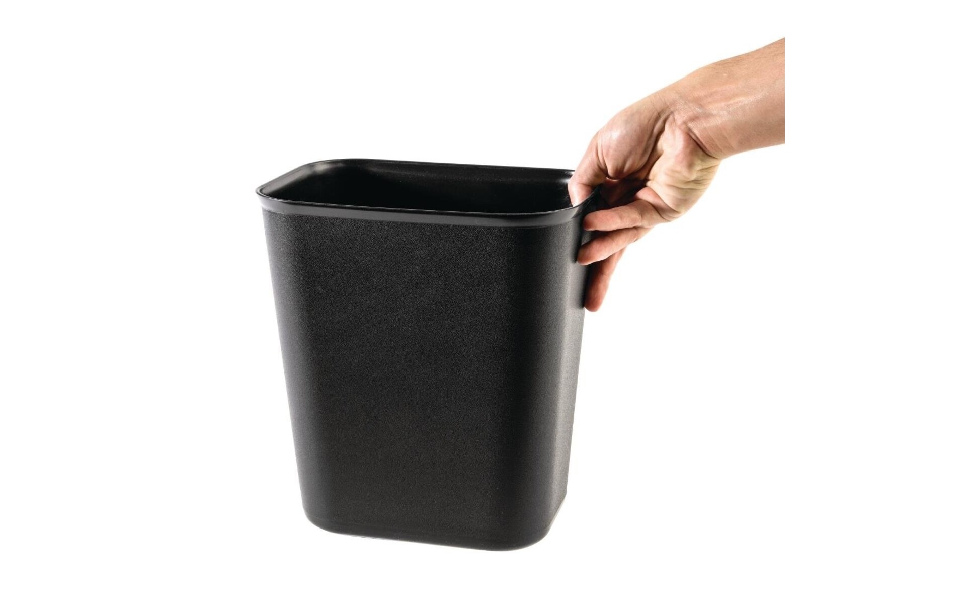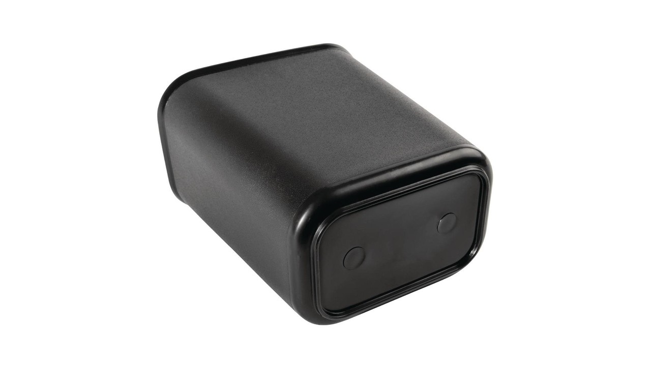 De rechthoekige M & T Bedroom Bin heeft een praktische opslagcapaciteit van 6 liter en past in krappe ruimtes, waardoor hij ideaal is voor kleinere hotelkamers, gastenkamers en badkamers in zowel commerciële als huishoudelijke locaties. De afvalbak voldoet aan de brandveiligheidsnormen en heeft een strak, zwart design gemaakt van duurzaam en betrouwbaar polypropyleen dat niet deukt of schilfert.