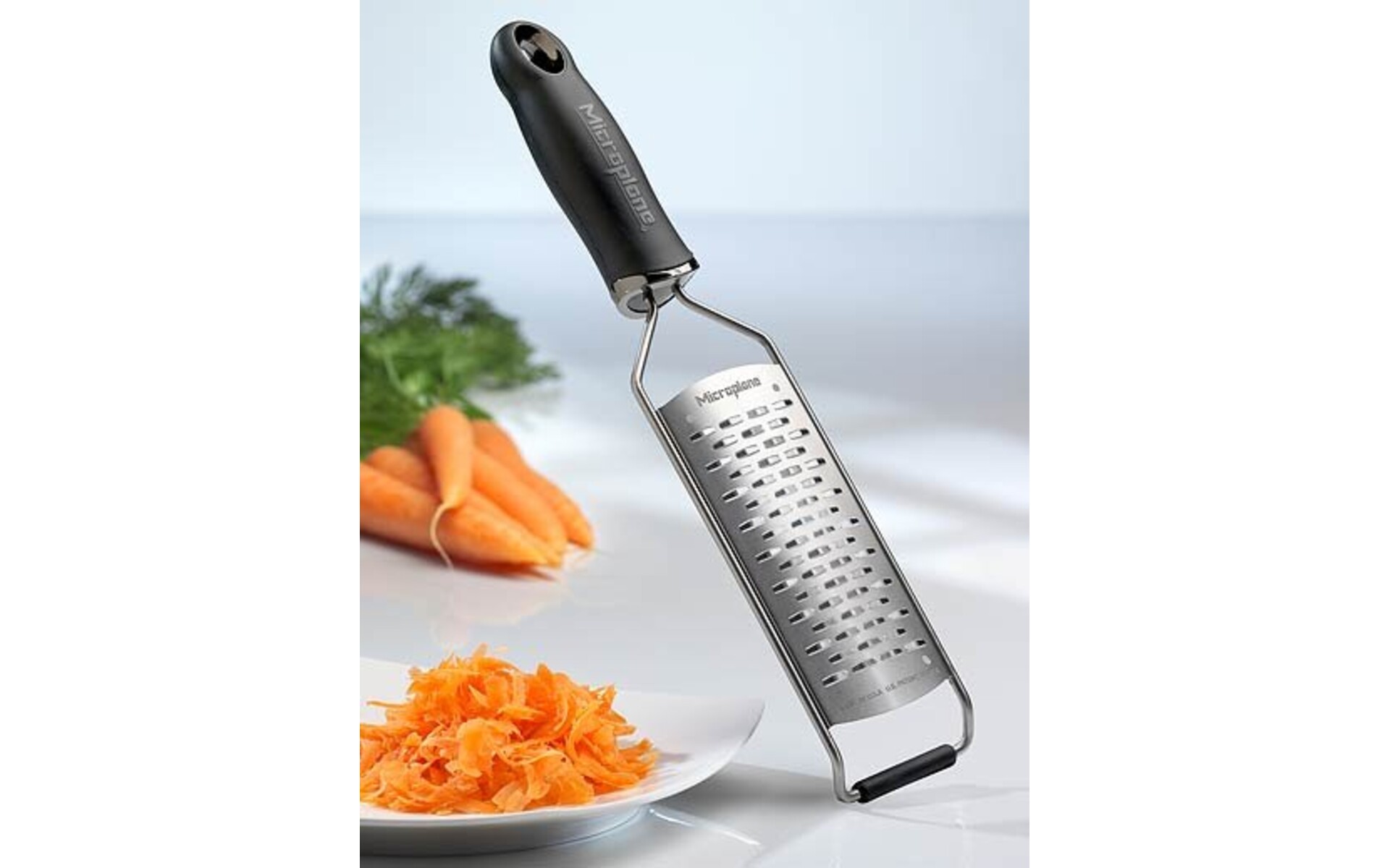 Sharper is better!” Microplane, de specialist op het gebied van rvs raspen, maakt gebruik van een lasertechniek waardoor de raspen vlijmscherp zijn. Voor ieder klusje is er een rasp. De Gourmet serie is uitgevoerd met een kunststof heft. Een schaaf is geschikt voor o.a. chocola of kaas. De schaaf geeft mooie vlokken en is ook goed te gebruiken voor het maken garneringen.