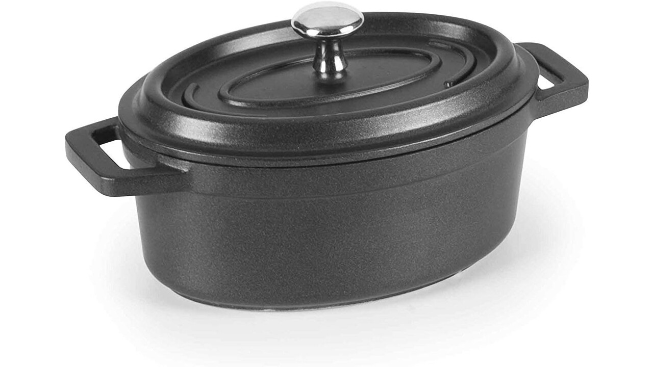Mini cocotte ovaal 12 x 8,5 cm met deksel zwarte uitvoering