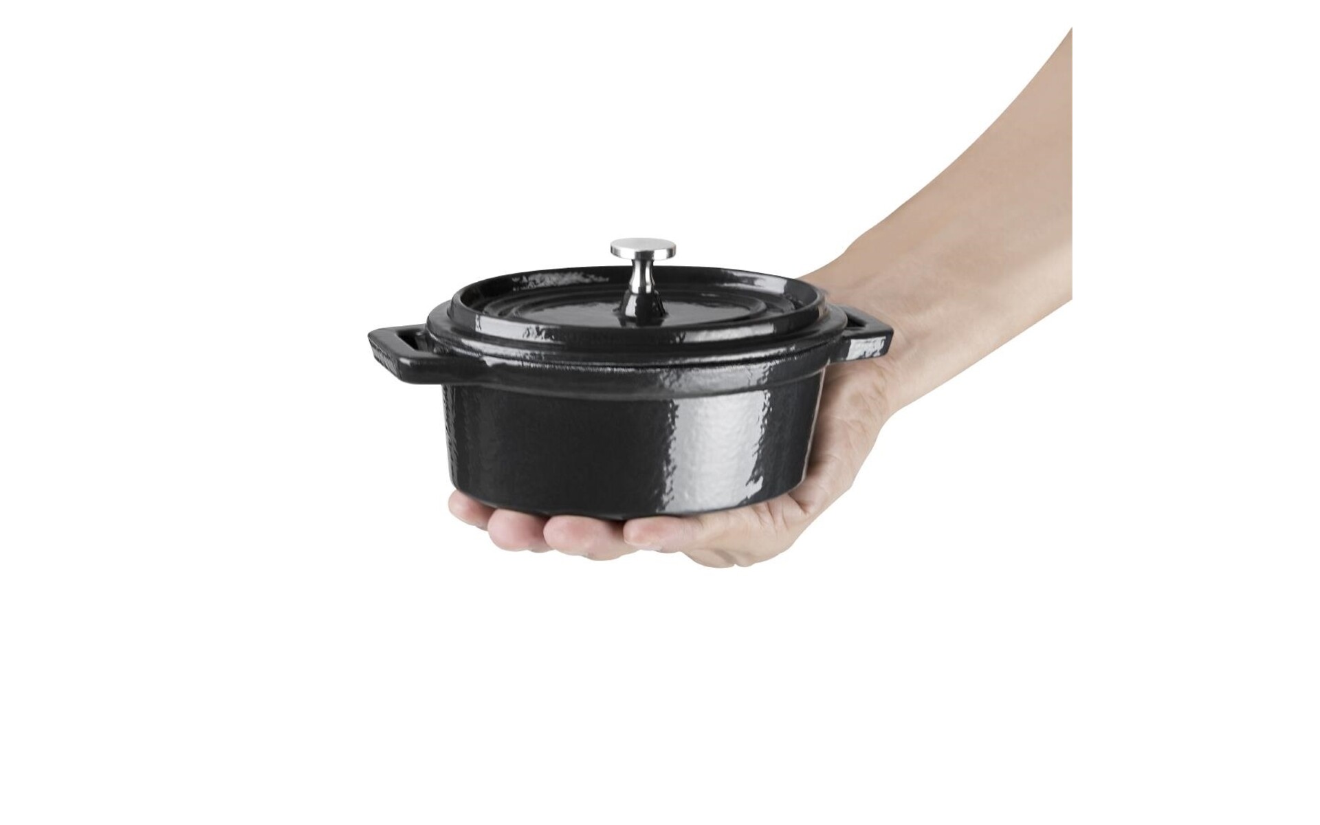 De gietijzeren mini braadpan zorgt voor een gelijkmatige warmteverdeling.