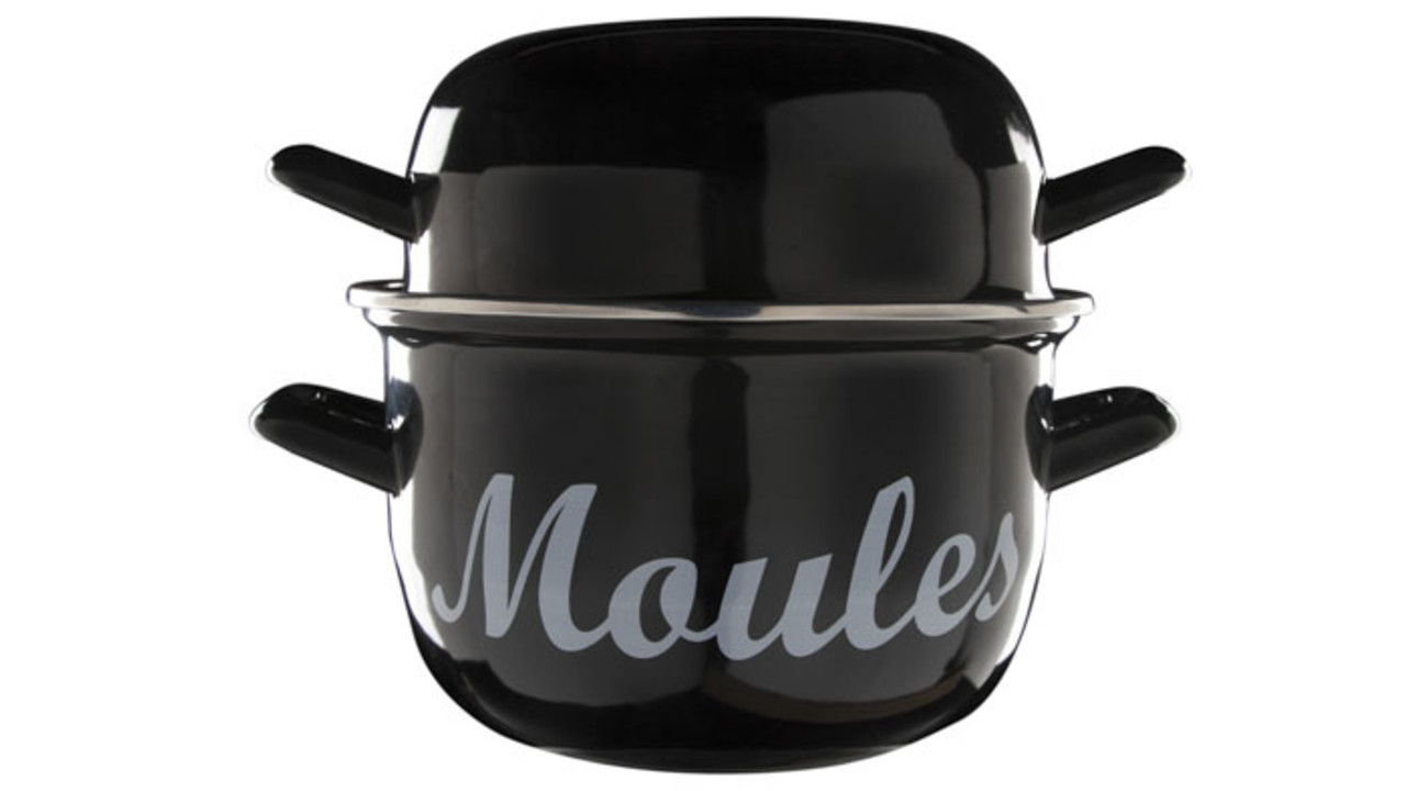 Mosselpot zwart met opdruk " Moules " 2,8 liter