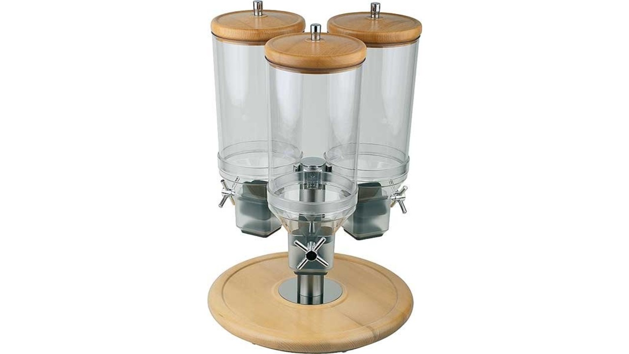Ontbijtgranen dispenser 3 ,x 4,5 liter op roterende houten voet
